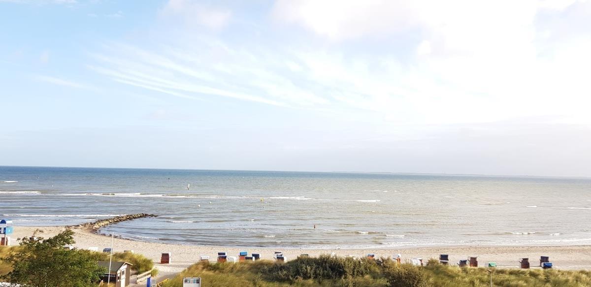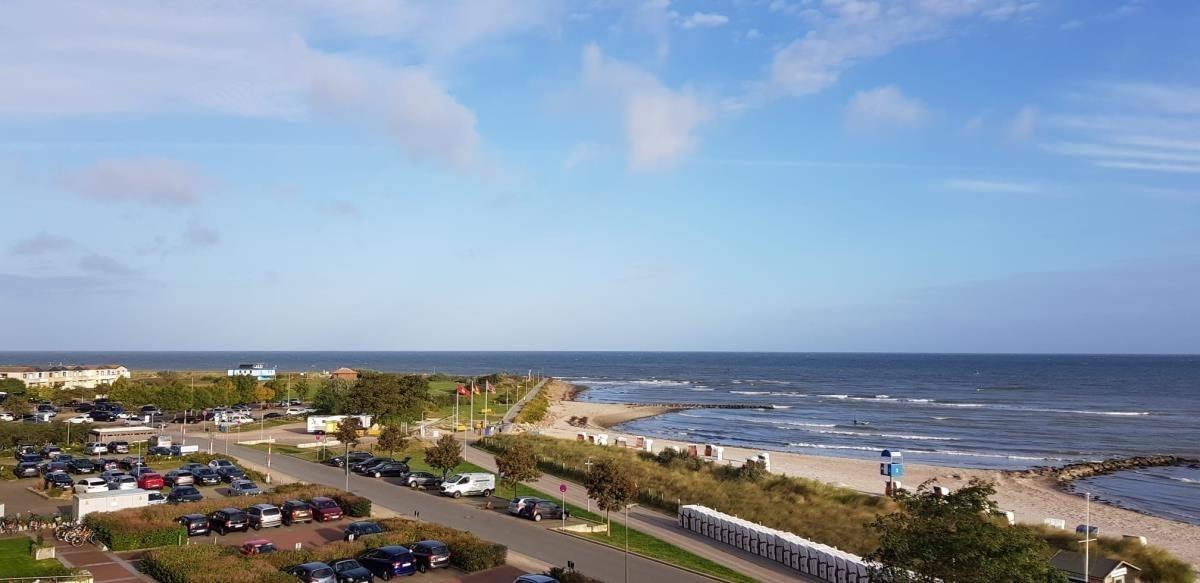 Der Balkon in der 4. Etage bietet einen herrlichen Ostseeweitblick, der zum Verweilen und Seele baumeln lassen einlädt. Das Doppelbett mit zwei getrennten Matratzen sorgt für erholsame Nächte – kein Schrankklappbett, sondern echtes Komfort-Schlafen.