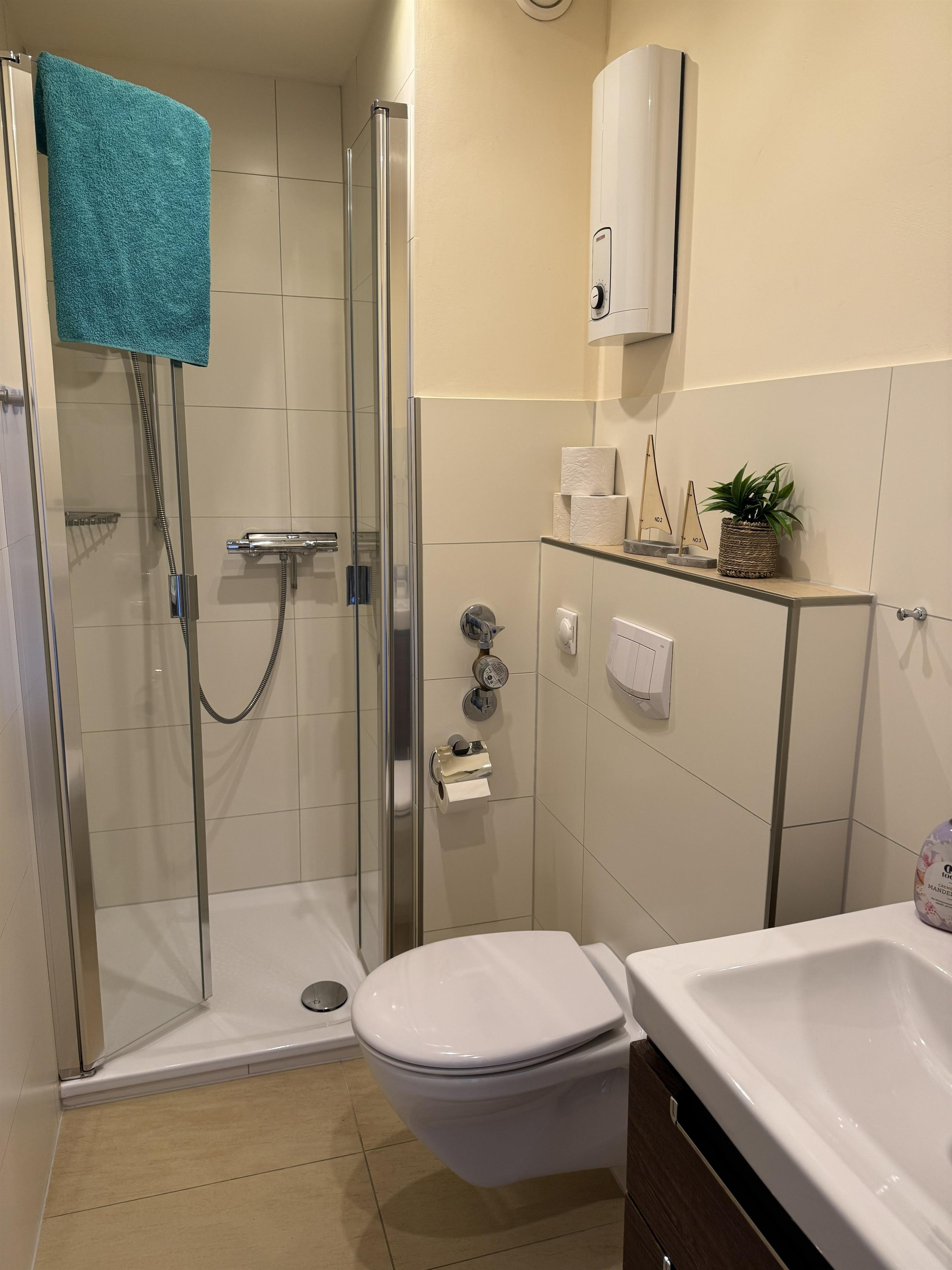 Ein weiterer Pluspunkt ist der praktische Fahrradkeller im Haus, der besonders für aktive Gäste ideal ist, die die Umgebung gerne mit dem Rad erkunden möchten. Auch die Parksituation ist komfortabel gelöst: Ein fester KFZ-Stellplatz gehört zur Wohnung und befindet sich auf einer großzügigen Parkplatzfläche in etwa 250 Metern Entfernung. Das Be- und Entladen direkt vor dem Haus ist selbstverständlich problemlos möglich, sodass Sie Ihr Gepäck bequem transportieren können.