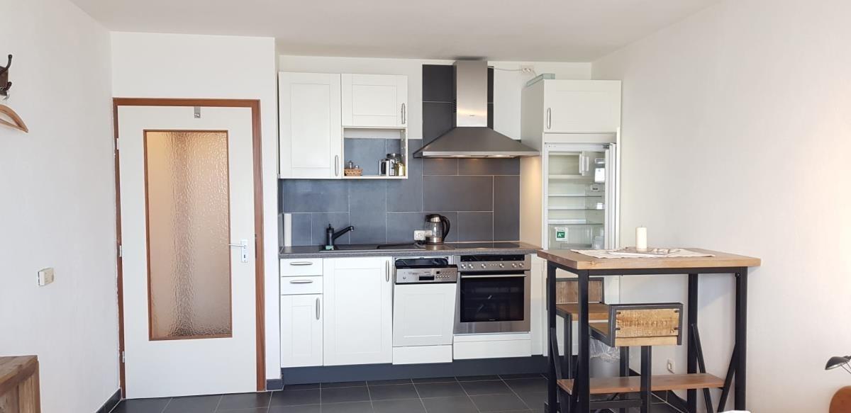 Der Wohn- und Schlafbereich ist komfortabel eingerichtet und verfügt über ein gemütliches Doppelbett mit zwei getrennten Matratzen, das für einen erholsamen Schlaf sorgt. Die moderne Küchenzeile lässt keine Wünsche offen: Ausgestattet mit Ceranfeld, Geschirrspüler und Gefrierfach bietet sie alles, was Sie für die Zubereitung Ihrer Mahlzeiten benötigen. Somit eignet sich das Studio sowohl für kurze Aufenthalte als auch für längere Urlaube.