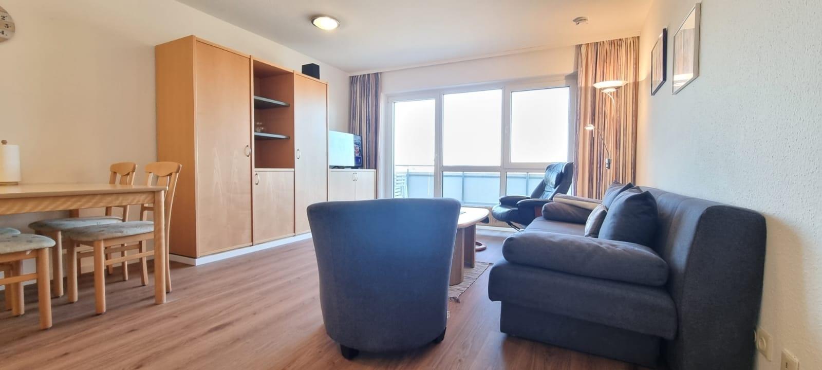 Genießen Sie den westlich ausgerichteten Balkon mit Gartenmöbeln, ideal zum Entspannen und den Sonnenuntergang über dem Ostseeufer zu beobachten. Zu den weiteren Annehmlichkeiten gehören kostenfreies WLAN, ein inklusive PKW-Stellplatz, Nichtraucherwohnung und haustierfreie Unterkunft – perfekt für eine ruhige, gepflegte Atmosphäre.