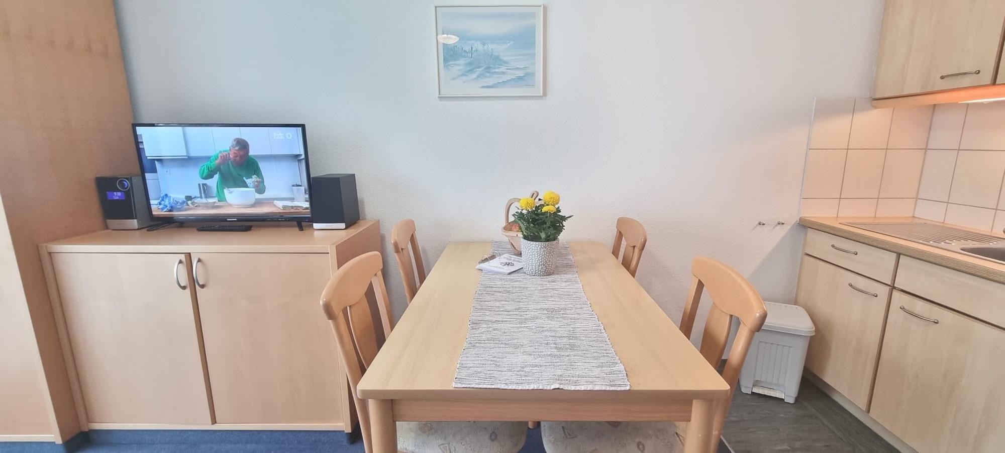 Zwei Flat-TV´s (Wohn- und Schlafzimmer), Musikanlage und ein persönlicher kostenfreier PKW-Stellplatz sind inklusive.