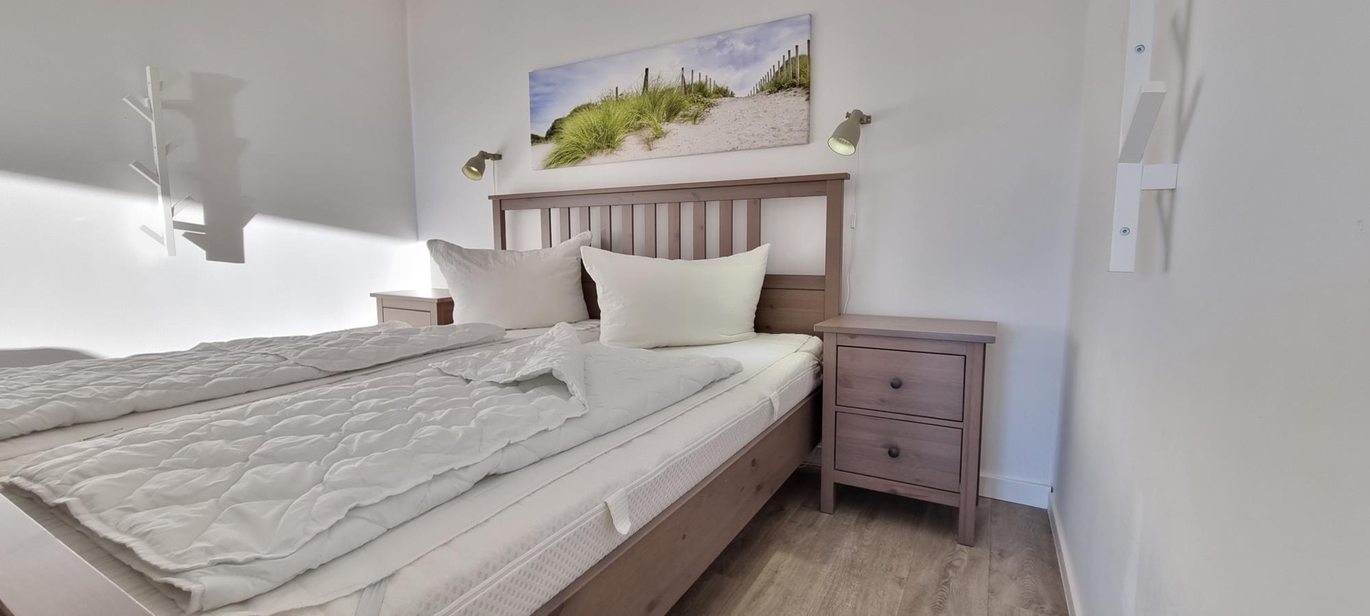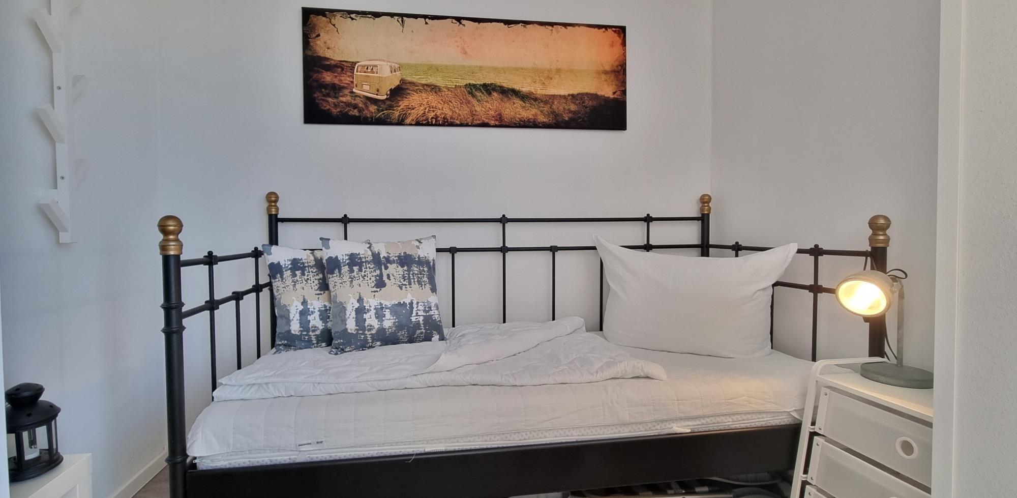 Diese stilvoll eingerichtete Ferienwohnung bietet Ihnen den perfekten Rückzugsort für einen entspannten Aufenthalt an der Ostsee. Das gemütliche Schlafzimmer ist mit einem komfortablen Doppelbett ausgestattet und sorgt für erholsame Nächte in ruhiger Atmosphäre. Zusätzlich steht Ihnen ein separater Schlafbereich mit Einzelbett zur Verfügung – ideal für Familien oder kleine Gruppen.