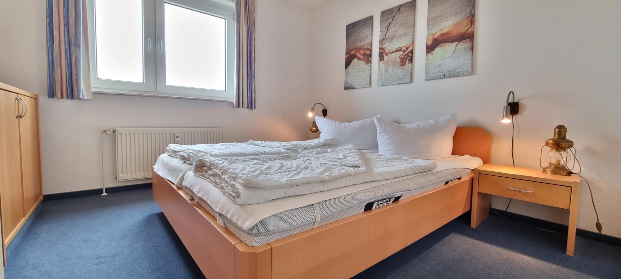 Erleben Sie unvergessliche Urlaubstage in Ferienwohnung 50, Ihrer charmanten Unterkunft in Heiligenhafen. Ideal für bis zu 3 Personen bietet diese Wohnung die perfekte Kombination aus Ruhe, Komfort und einzigartigem Ausblick auf die Ostsee und die umliegende Landschaft. Das separate Schlafzimmer verfügt über ein Fenster mit direktem Blick auf das Wasser und sorgt für erholsamen Schlaf. Im offenen Wohnbereich befindet sich ein Schrankklappbett, das eine zusätzliche Schlafmöglichkeit für eine dritte Person bietet – ideal für kleine Familien oder Freunde.