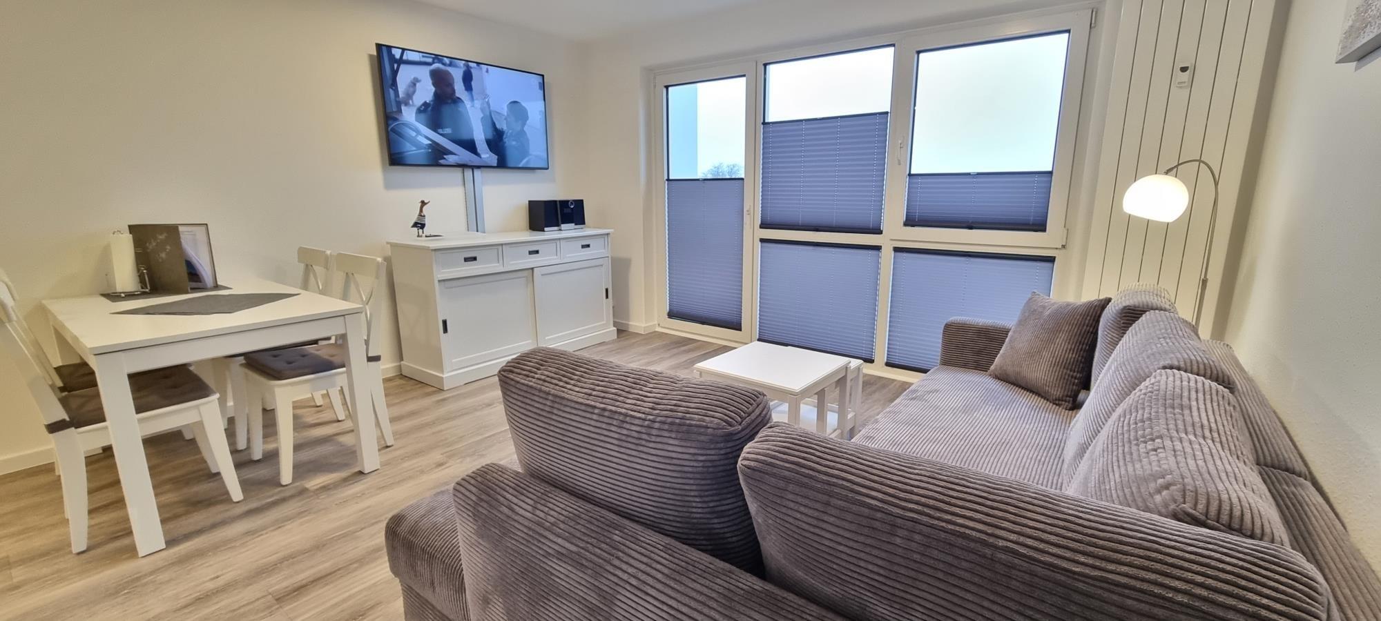 Ein modernes Duschbad, kostenfreies Glasfaser-WLAN sowie ein eigener PKW-Stellplatz runden das Angebot ab. Auch das nahe gelegene Aktiv-Hus und die Promenade laden zu Freizeit, Wellness und Spaziergängen ein.