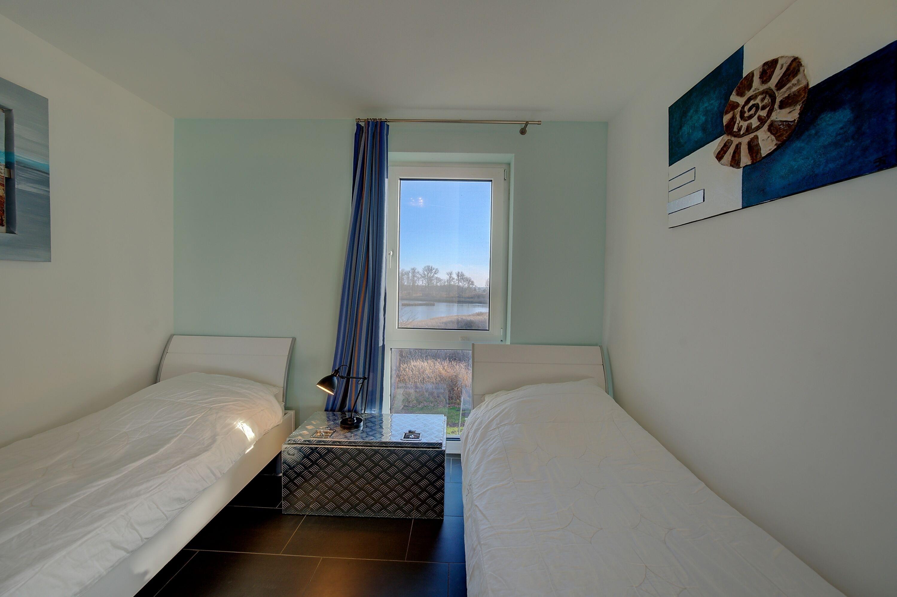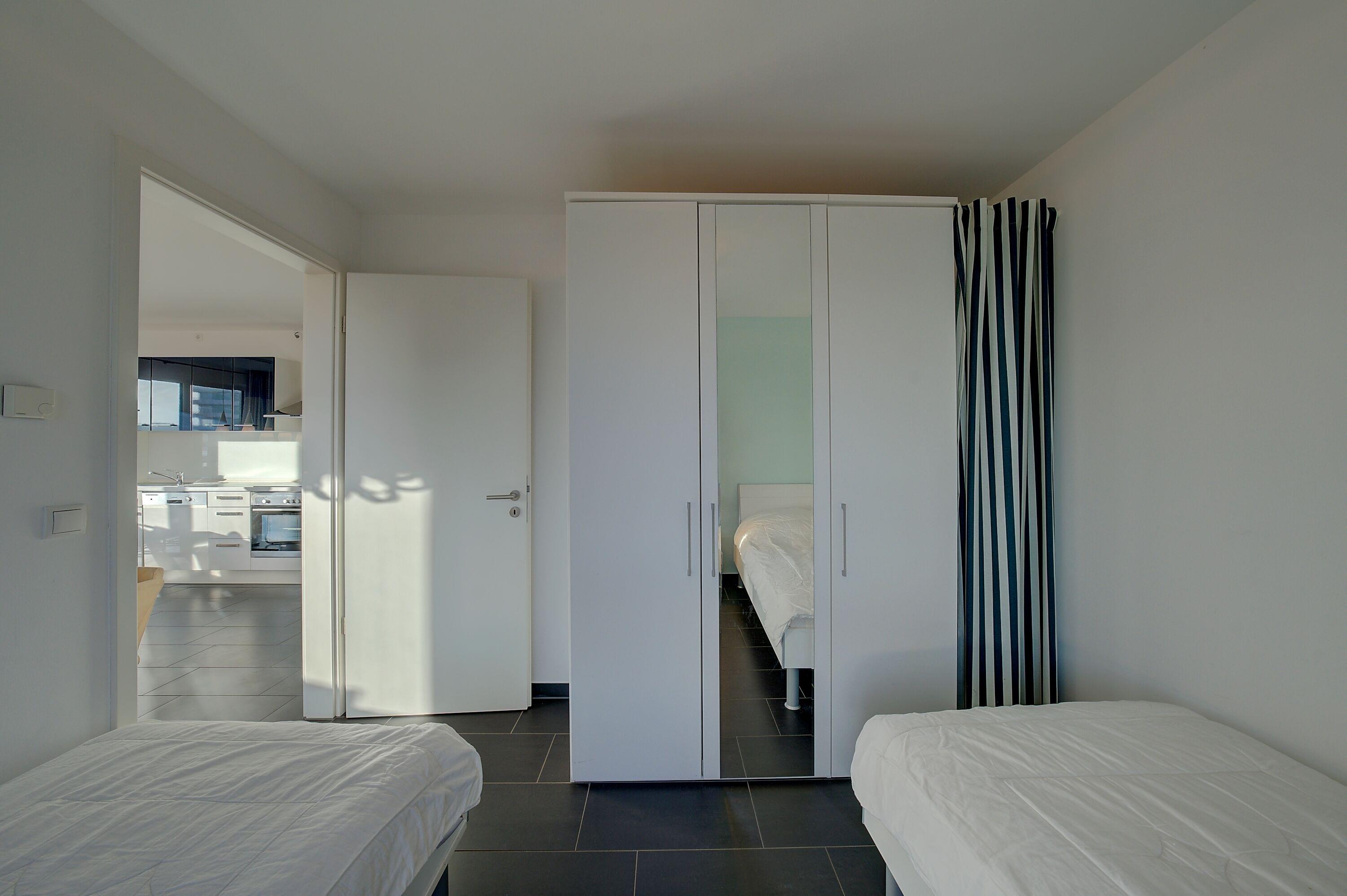 Für erholsame Nächte sorgen zwei separate Schlafzimmer. Das großzügige Hauptschlafzimmer ist mit einem komfortablen Boxspringbett (180 × 200 cm) ausgestattet und bietet ausreichend Platz zum Abschalten und Erholen. Das zweite Schlafzimmer verfügt über zwei gemütliche Einzelbetten sowie einen geräumigen Kleiderschrank und eignet sich ideal für Kinder oder weitere Mitreisende.