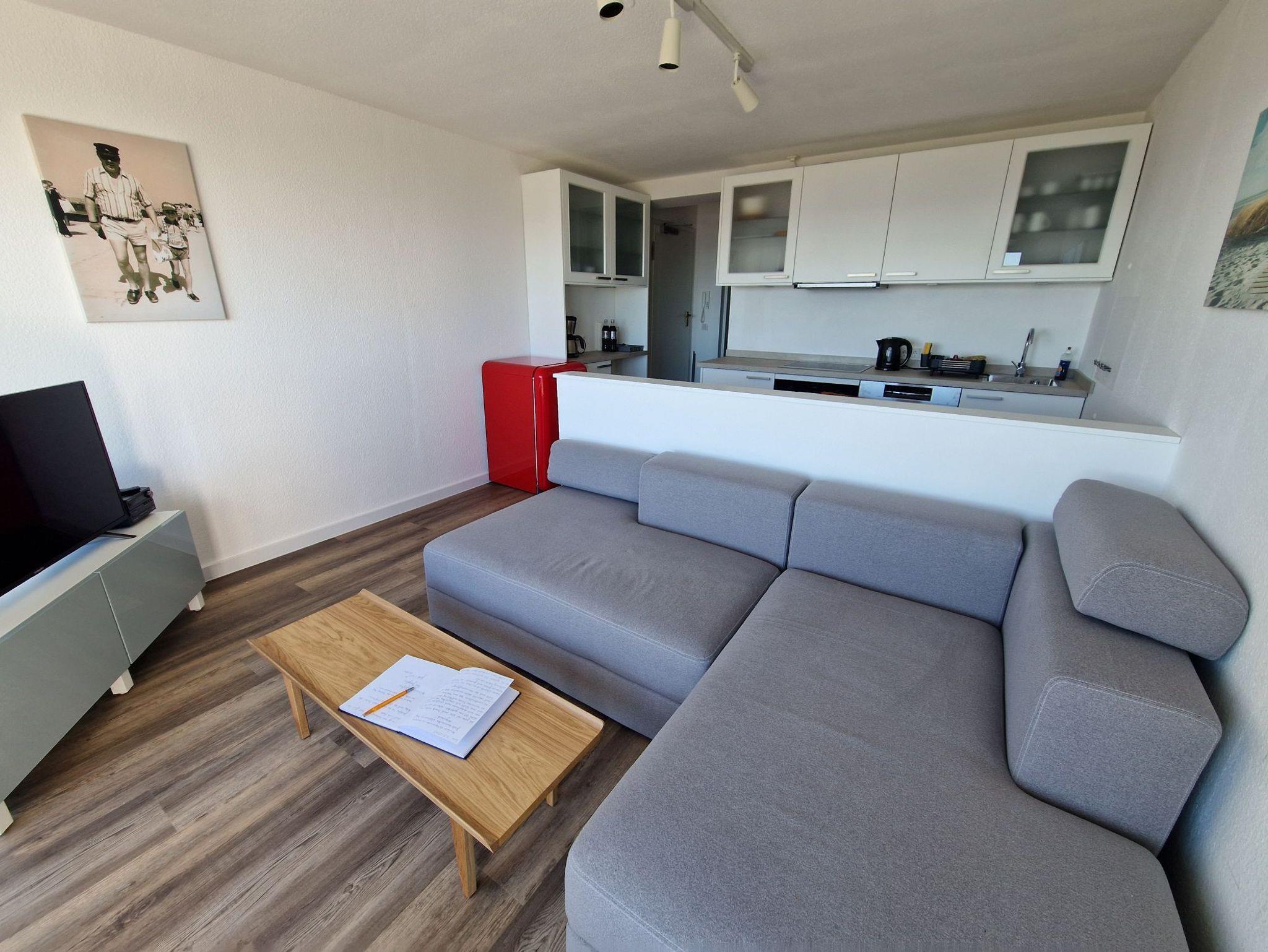 Charmantes Apartment auf Helgoland mit Meerblick, moderner Küche und gemütlichem Wohnbereich für erholsame Tage.