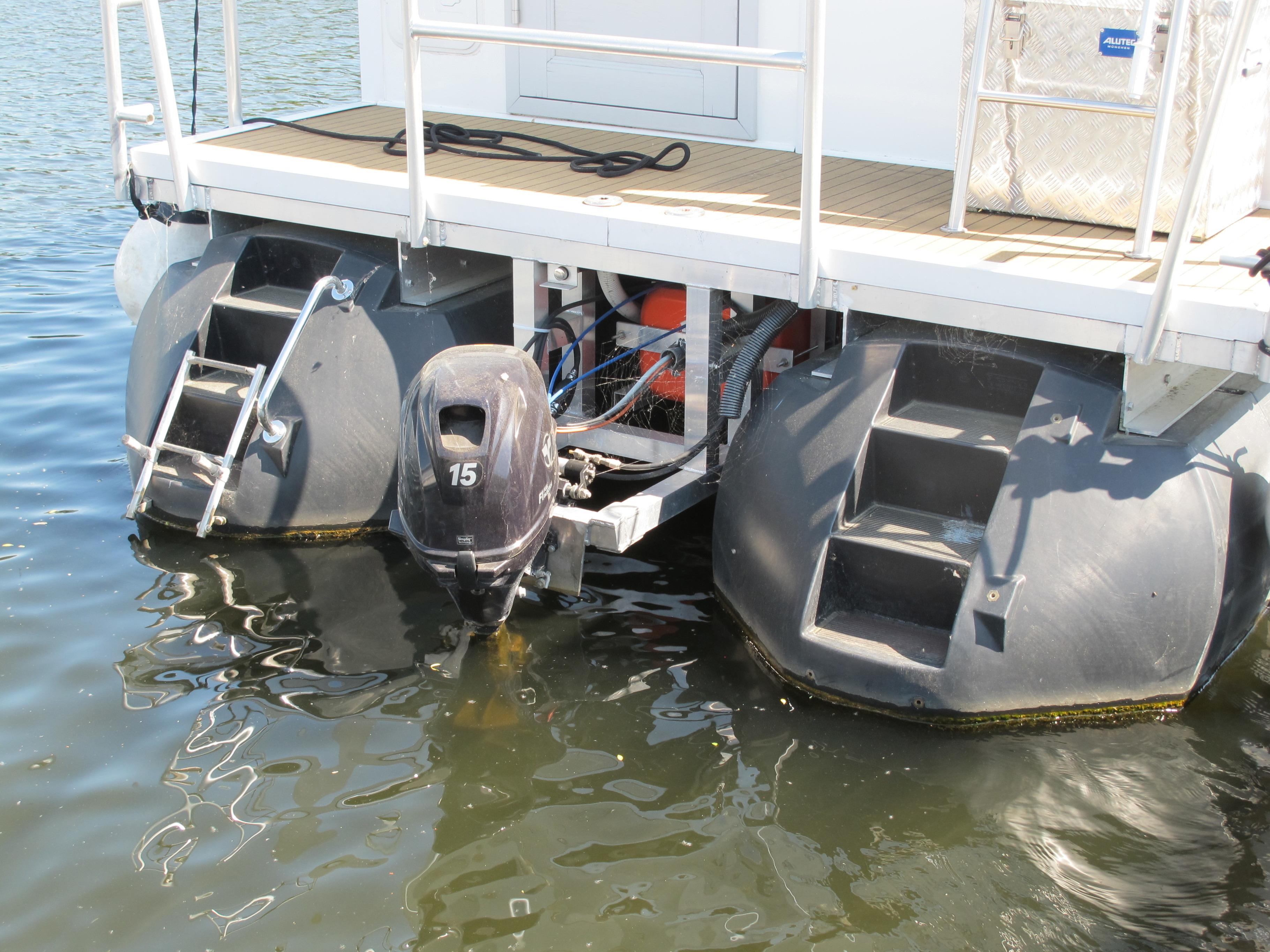 Das Boot verfügt über einen 15 PS Benzin-Außenborder und hat eine Höchstgeschwindigkeit von 6 km/h. Das Objekt wird vollgetankt übergeben und muß am Abreisetag auch wieder vollgetankt übergeben werden (auf Wunsch und gegen Zahlung von einmalig € 40 wird dieses auch durch den Hafenmeister für den Gast durchgeführt). Auch auf Wunsch wird vor Ort ein freiwilliges Boots-Fahrrtraining durch den Hafenmeister angeboten (Kosten € 65 einmalig). Das Boot verfügt über einen 250 Liter Brauchwassertank; der Abwassertank hat 200 Liter Fassungsvermögen.
