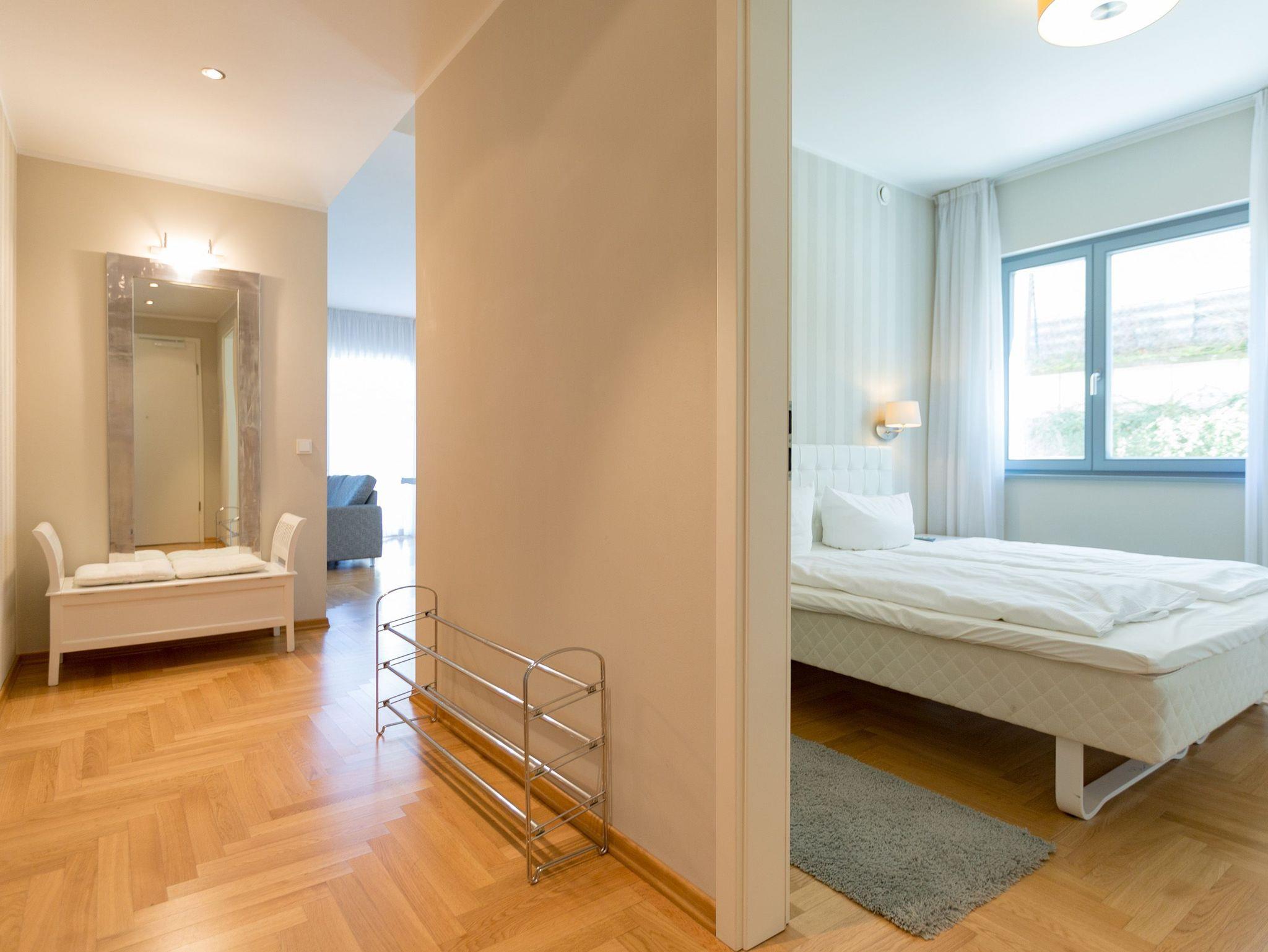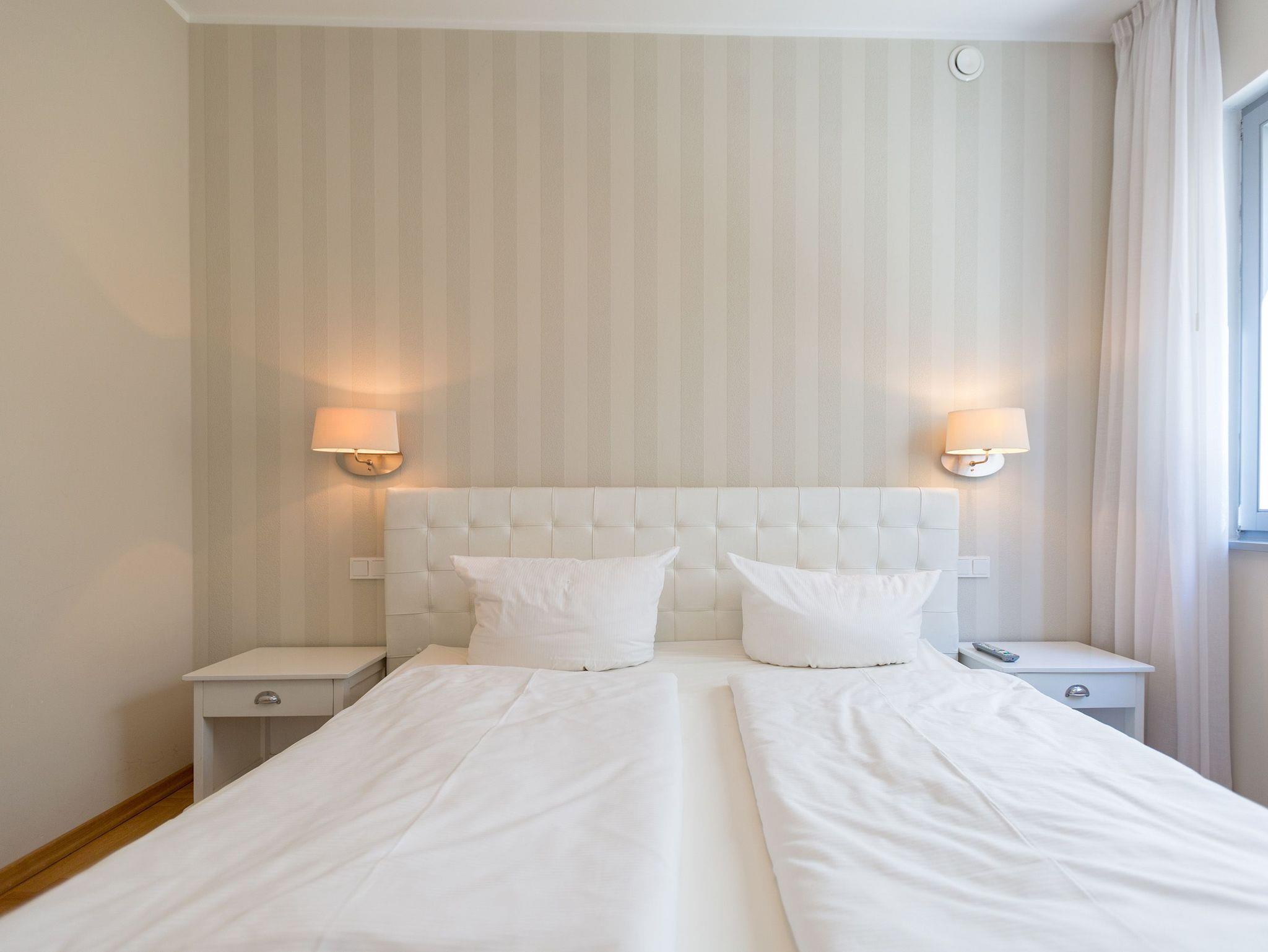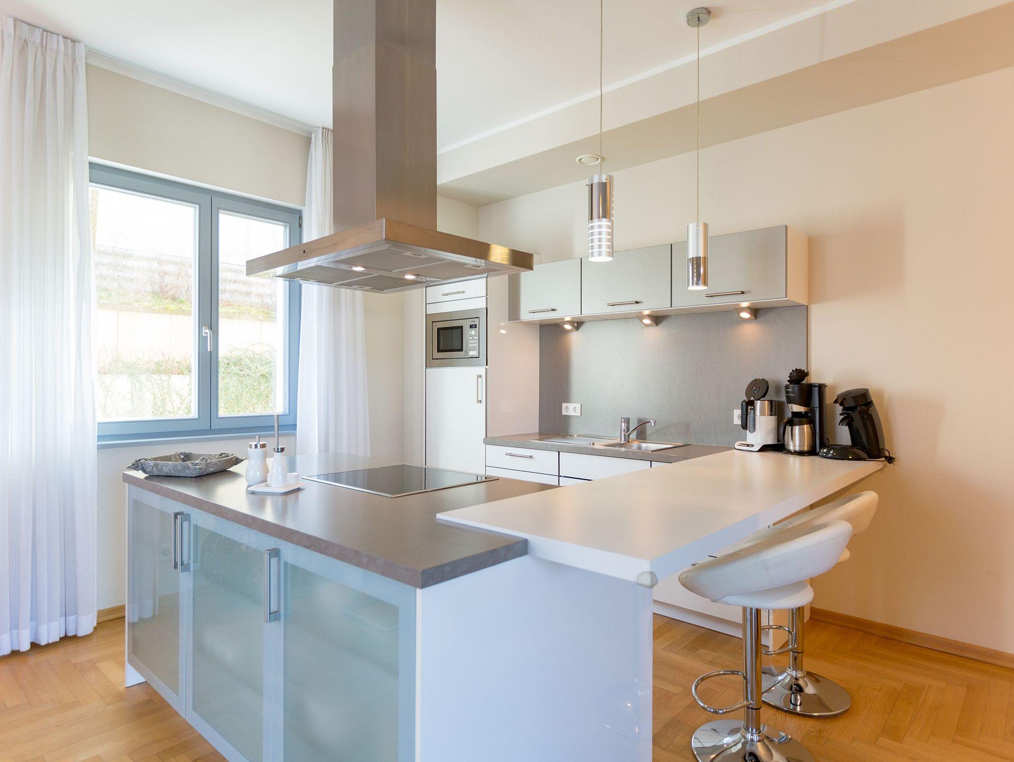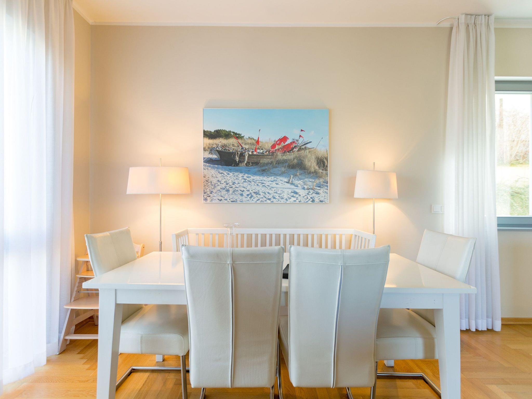 Freuen Sie sich auf ein großzügiges Wohnerlebnis - üppige 98 qm, aufgeteilt auf Wohnbereich mit komplett ausgestatteter Küche, 2 Schlafzimmern mit Doppelbetten und 2 Bäder. Bis zu 4 Personen und ein Kleinkind (bis 3 Jahre) genießen hier die charmante Innenausstattung und die liebevollen Details. Auf Wunsch stellen wir für unsere kleinen Gäste ein Kinderreisebett (ohne zusätzliche Matratze [&] Bettzeug) und einen Kinderhochstuhl ( gegen einen Aufpreis) zur Verfügung. Für Ihren Komfort sind die Betten bei der Anreise bezogen und Handtücher liegen bereit. Das WLAN-Netz im Haus kann kostenfrei genutzt werden. Jeder Raum ist mit edlem Parkett und hellen Tönen eingerichtet, komplettiert durch technische Feinheiten. Ihre eigene Sauna (gegen Gebühr) in der Wohnung und der Kamin wärmen Sie nicht nur an kalten Tagen. In der sonnigen Jahreszeit erweitert sich der Wohnraum durch die große Südwestterrasse mit Bestuhlung. Hier verbringen Sie Ihren Urlaub im dezenten Luxus.