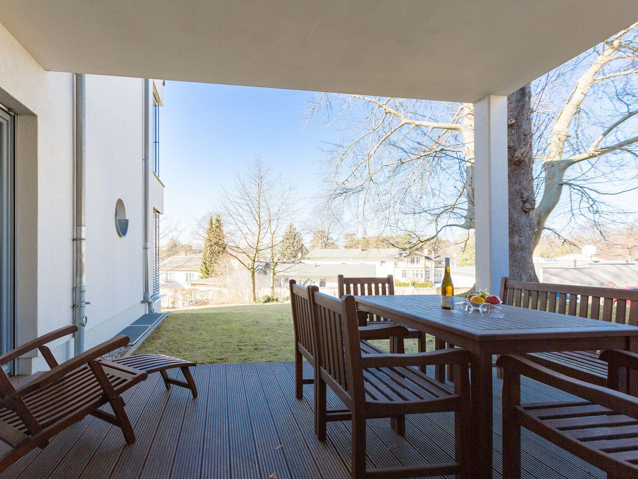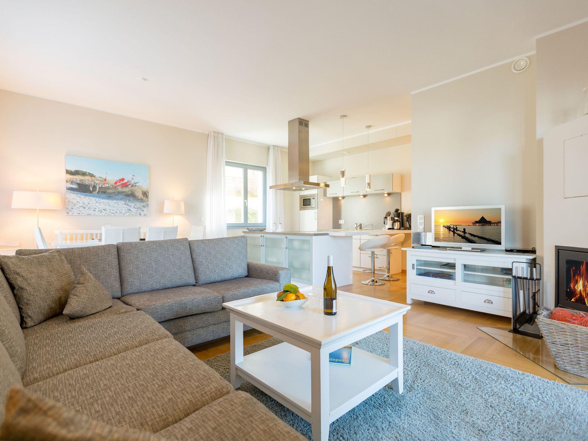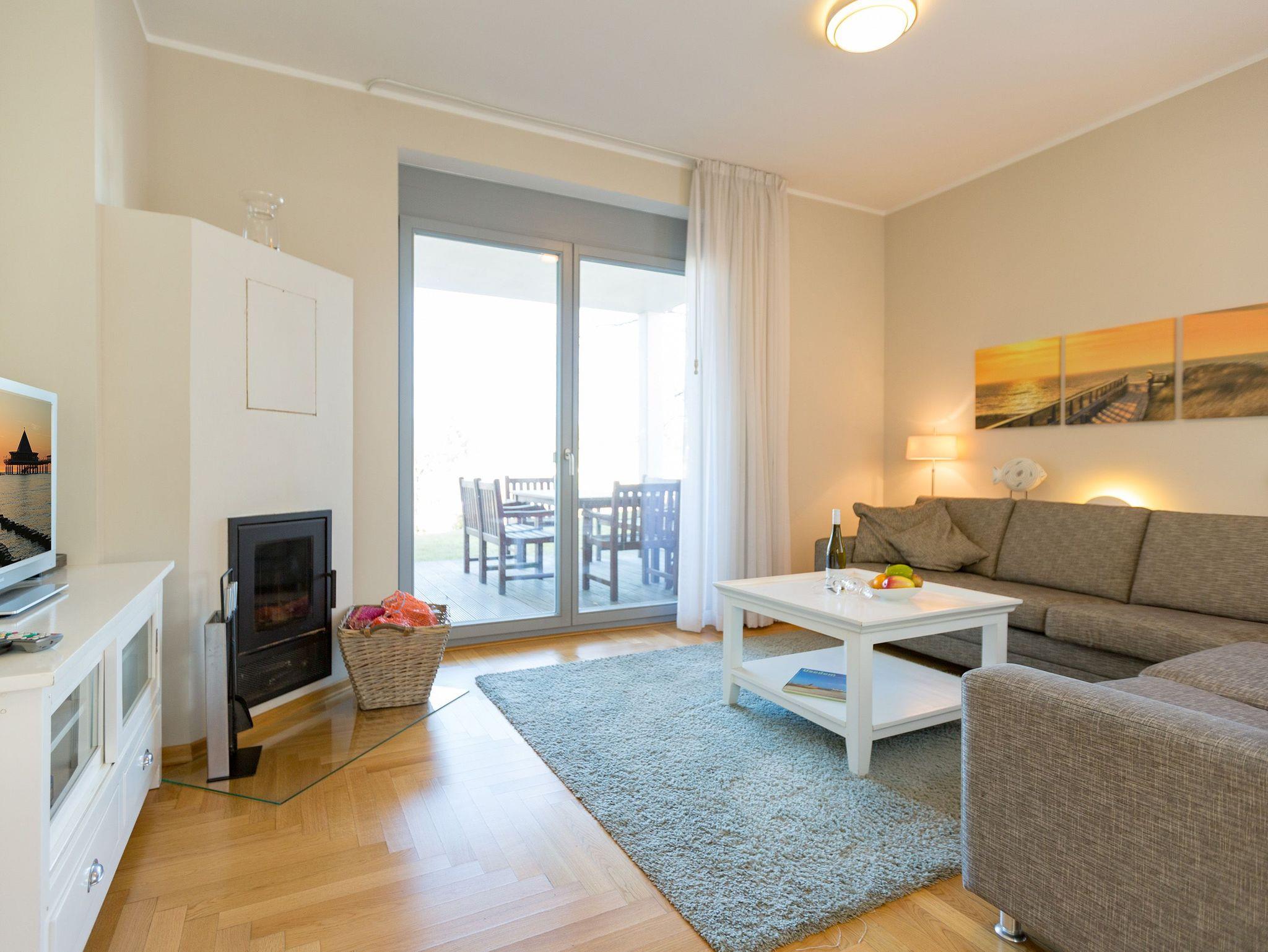 Großzügiges Apartment in Heringsdorf mit Sauna, Kamin und großer Südwestterrasse für einen komfortablen Luxusurlaub.