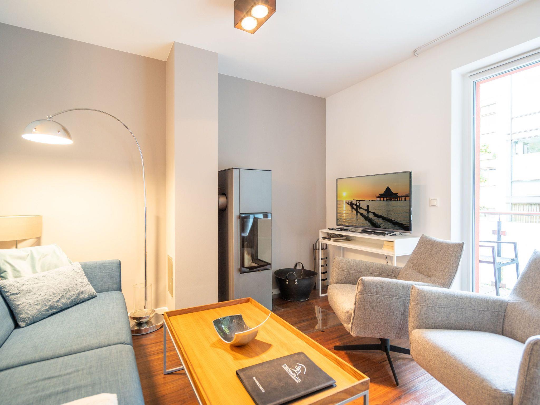 Modernes 3-Raum-Appartement mit Kamin und Balkon, nur 350 m vom Strand in Heringsdorf entfernt.