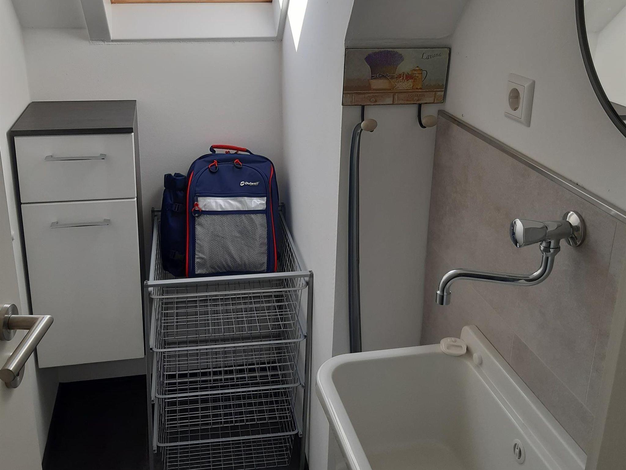Die Zimmer sind über einen Flur verbunden, der eine Garderobe und einen Putzmittelschrank enthält. Darüber hinaus gibt es noch eine kleine Kammer mit Wasseranschluss und der Möglichkeit Ihre Wanderschuhe dort zu reinigen und zu lagern.