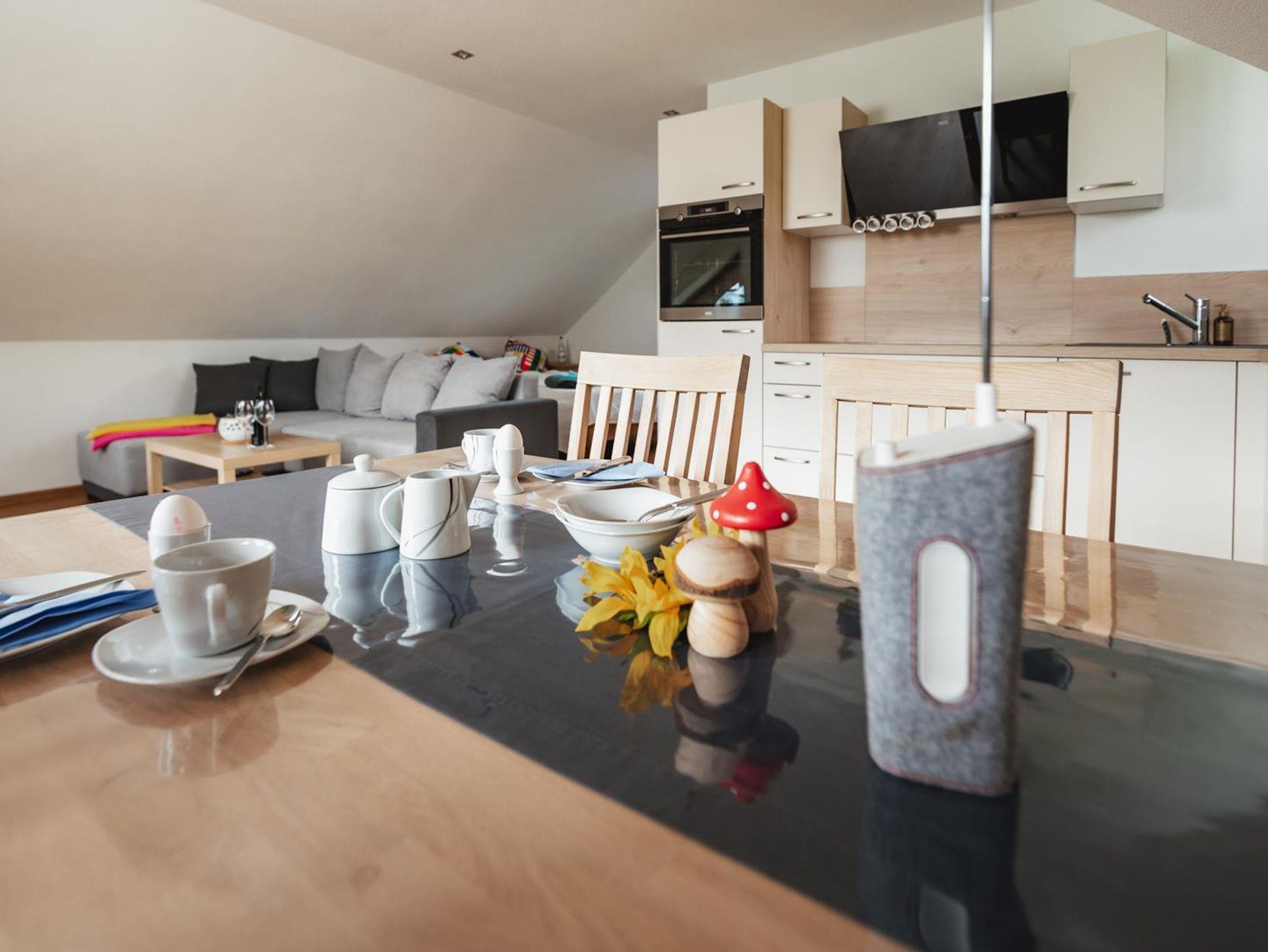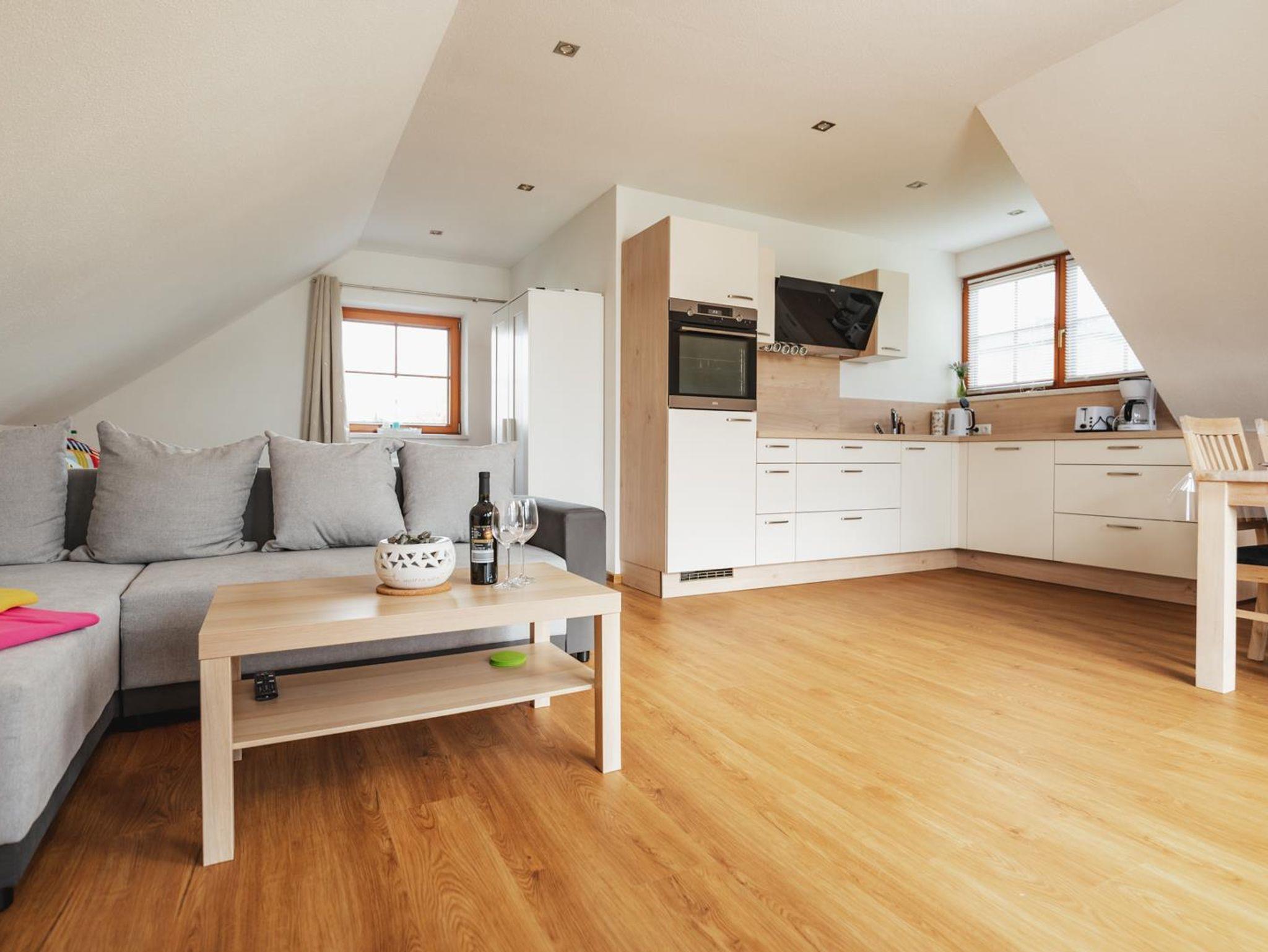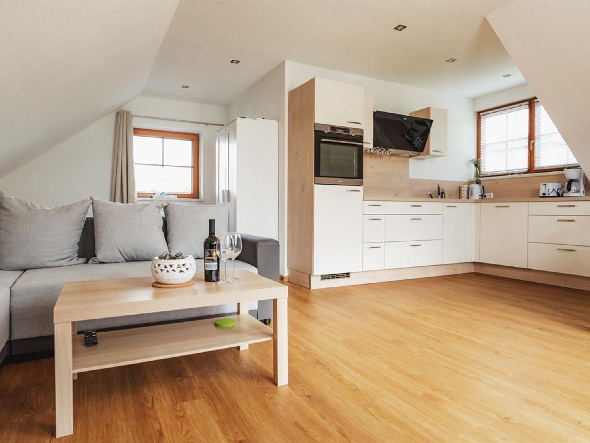 Sie erwartet ein neu eingerichteter Wohnschlafraum mit Doppelbett und ausziehbarer Schlafcouch. Vollausgestattete Küche, Essecke, Sat-TV, WLAN und Bad/Du/WC. Möbilierter Balkon mit Südausrichtung. Spielplatz in der Nähe, sowie wunderschöne Wander- und Radwege. Parkplatz direkt am Haus.
