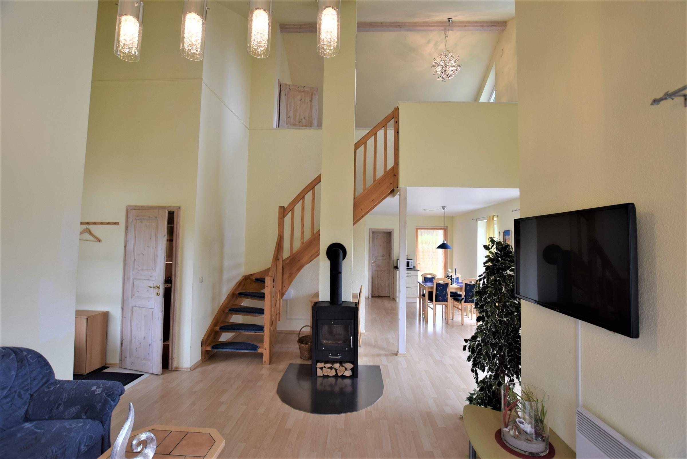 Das komfortable Ferienhaus in Hohwacht bietet Platz für bis zu fünf Personen und überzeugt mit einem durchdachten Raumkonzept auf etwa 90 Quadratmetern. Der offene Wohn- und Essbereich mit Couchecke, Kamin und Essplatz schafft eine einladende Atmosphäre. Die moderne Küche ist voll ausgestattet mit Ceran-Herd, Backofen, Mikrowelle, Kühlschrank mit Gefrierfach und Spülmaschine.