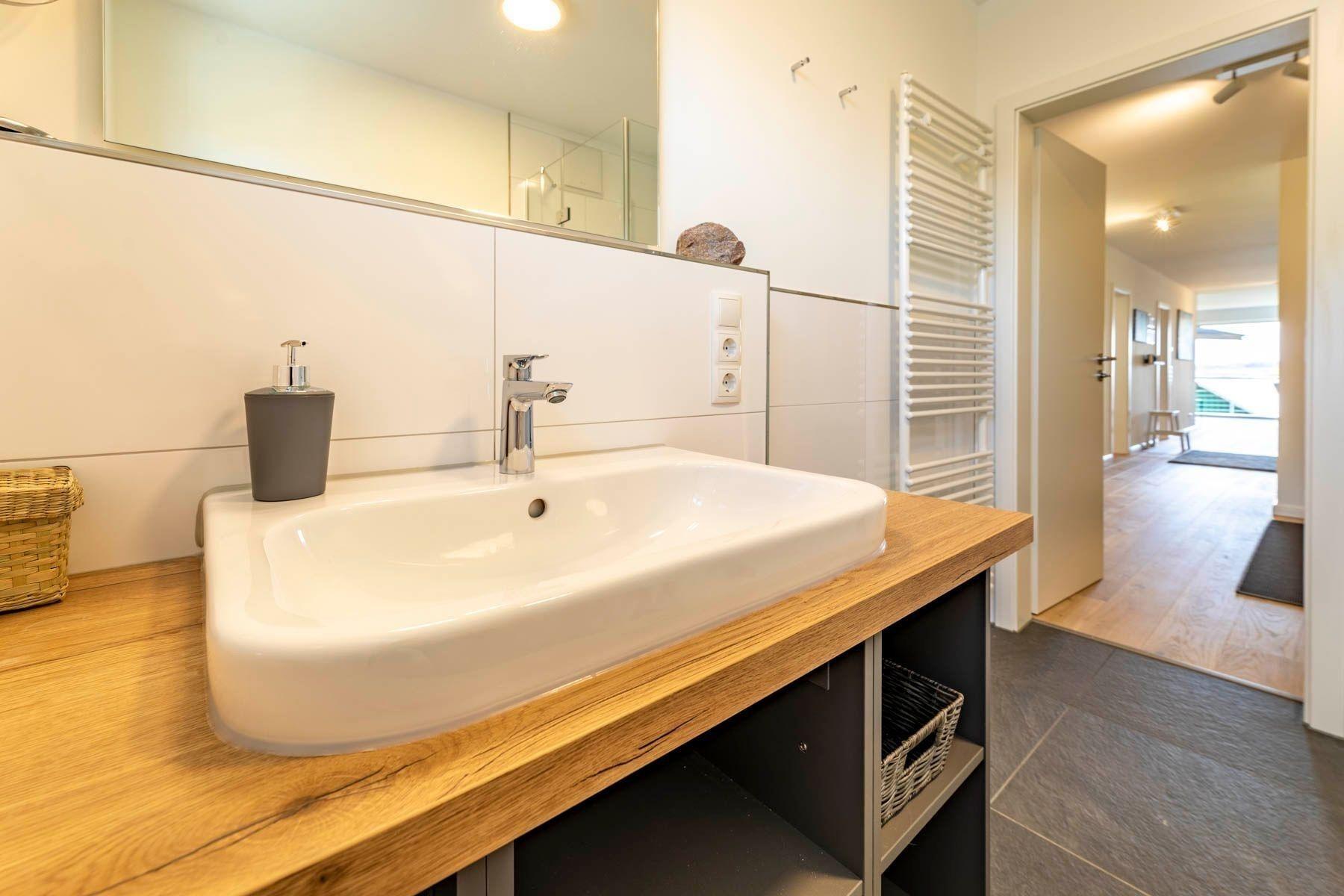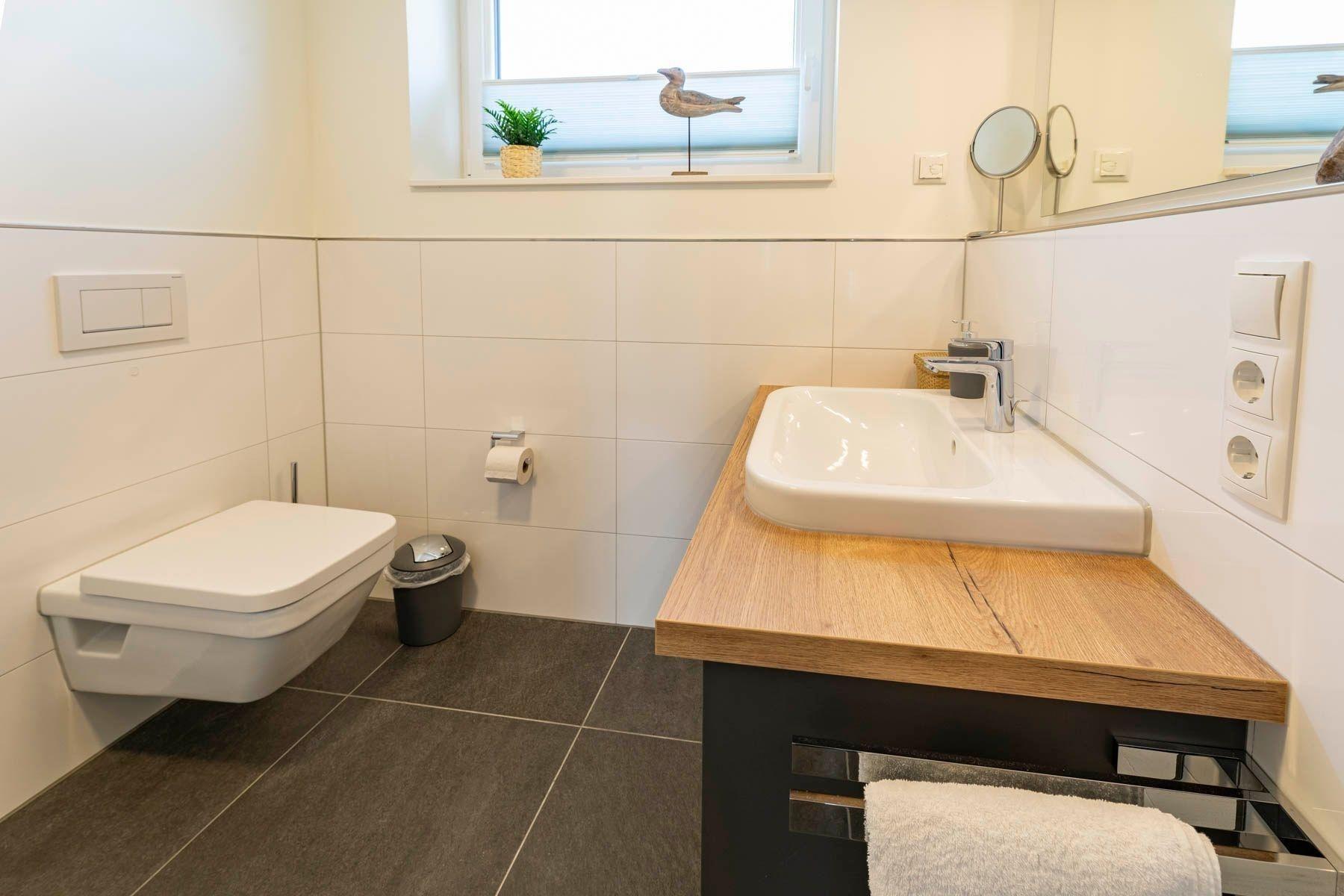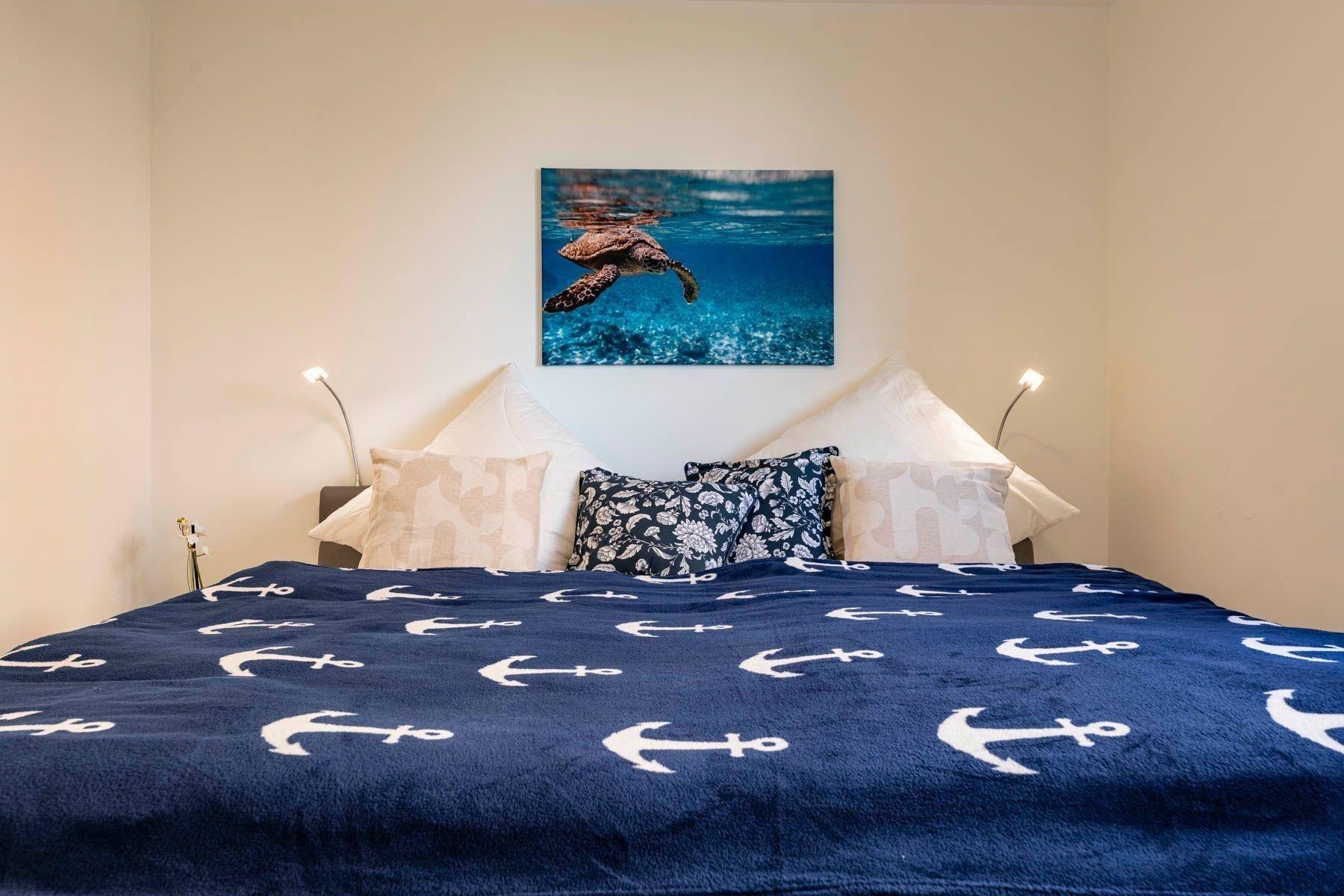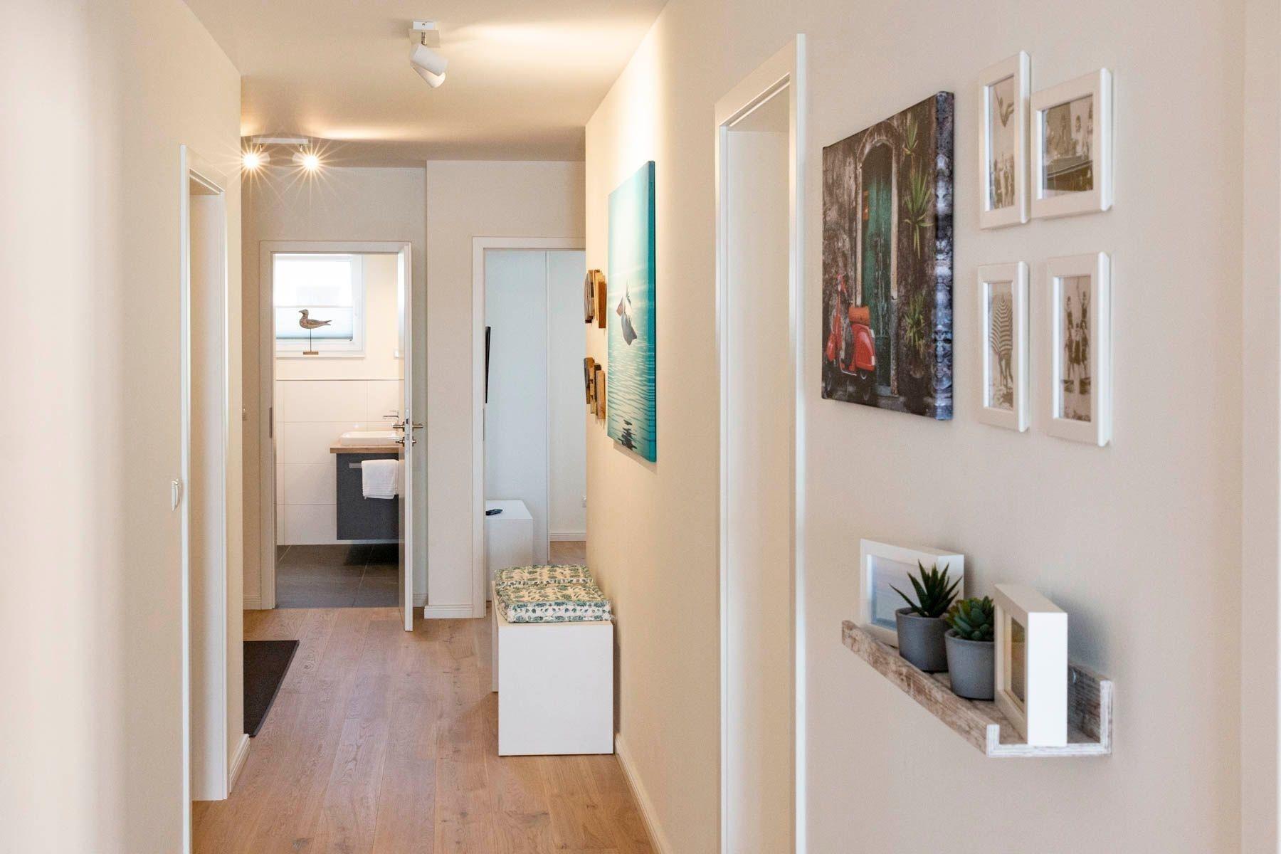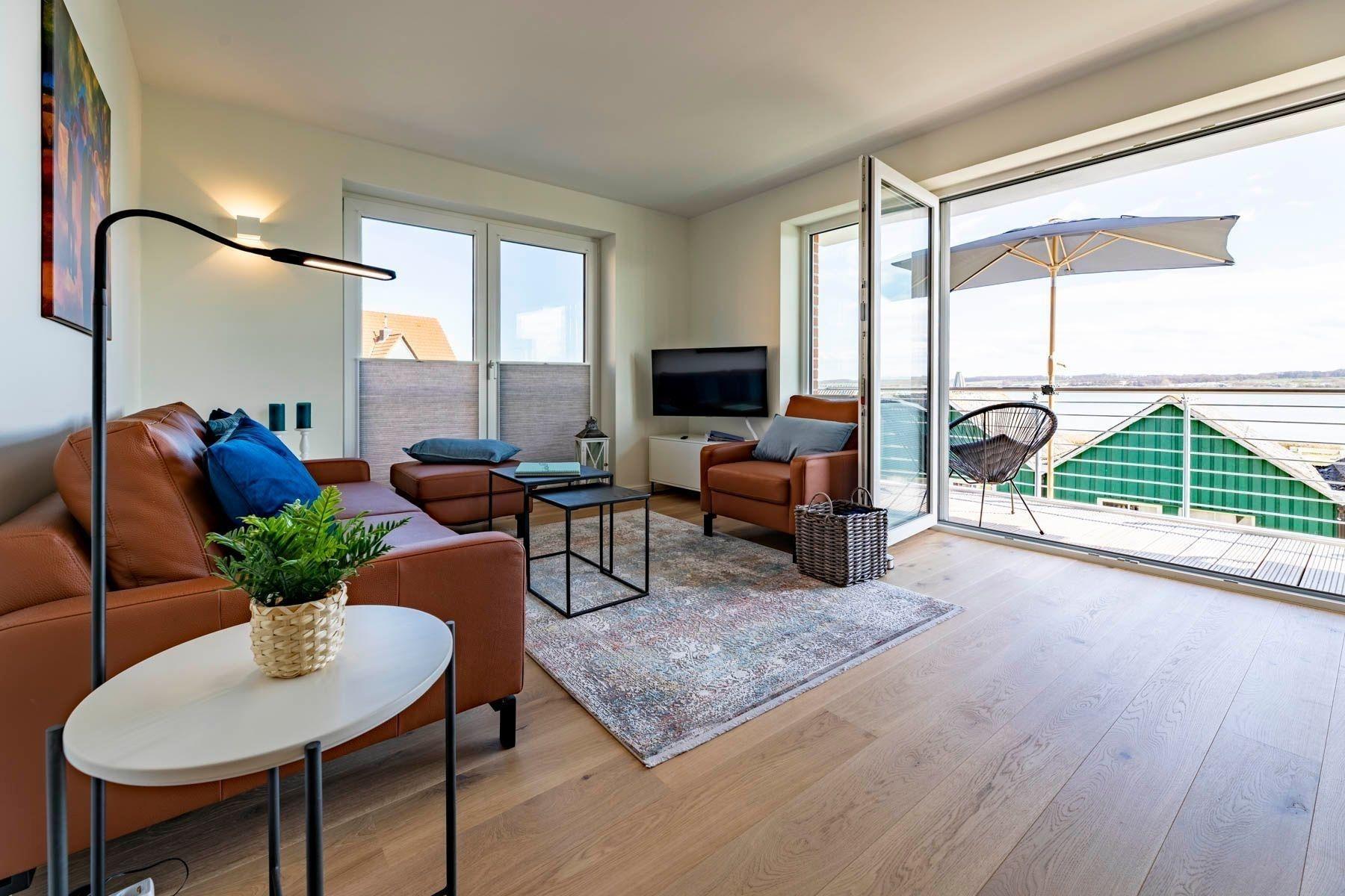 Die Ferienwohnung „Pelikan“ im 1. Obergeschoss des Hauses "Meeresblick" bietet einen herrlichen Ausblick und ist für bis zu sechs Personen ausgelegt. Der Wohn- und Essbereich besticht durch große Glastüren, die auf den Balkon führen, während ein Ledersofa und ein Flachbildfernseher zum Verweilen einladen. Die voll ausgestattete Küche verfügt über eine Geschirrspülmaschine, ein Induktionskochfeld, einen Backofen und einen Kühlschrank mit Gefriermöglichkeit. Die Schlafzimmer sind mit Boxspringbetten und großzügigen Kleiderschränken ausgestattet. Zudem gibt es zwei moderne Bäder mit Dusche/WC und ausreichend Stauraum. WLAN ist kostenlos verfügbar. Zur Unterkunft gehört ein fester Parkplatz sowie ein separater Raum für Fahrräder. Ein Fahrstuhl erleichtert den Zugang zur Wohnung. Haustiere sind willkommen, und die Wohnung ist eine Nichtraucherunterkunft.