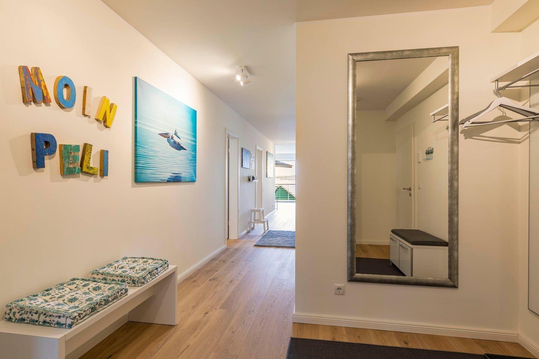 Die Ferienwohnung „Pelikan“ bietet Platz für bis zu sechs Personen, direkt an der Strandpromenade gelegen, mit traumhaftem Meerblick, modernen Annehmlichkeiten und fußläufigen Restaurants – ideal für den nächsten Urlaub.