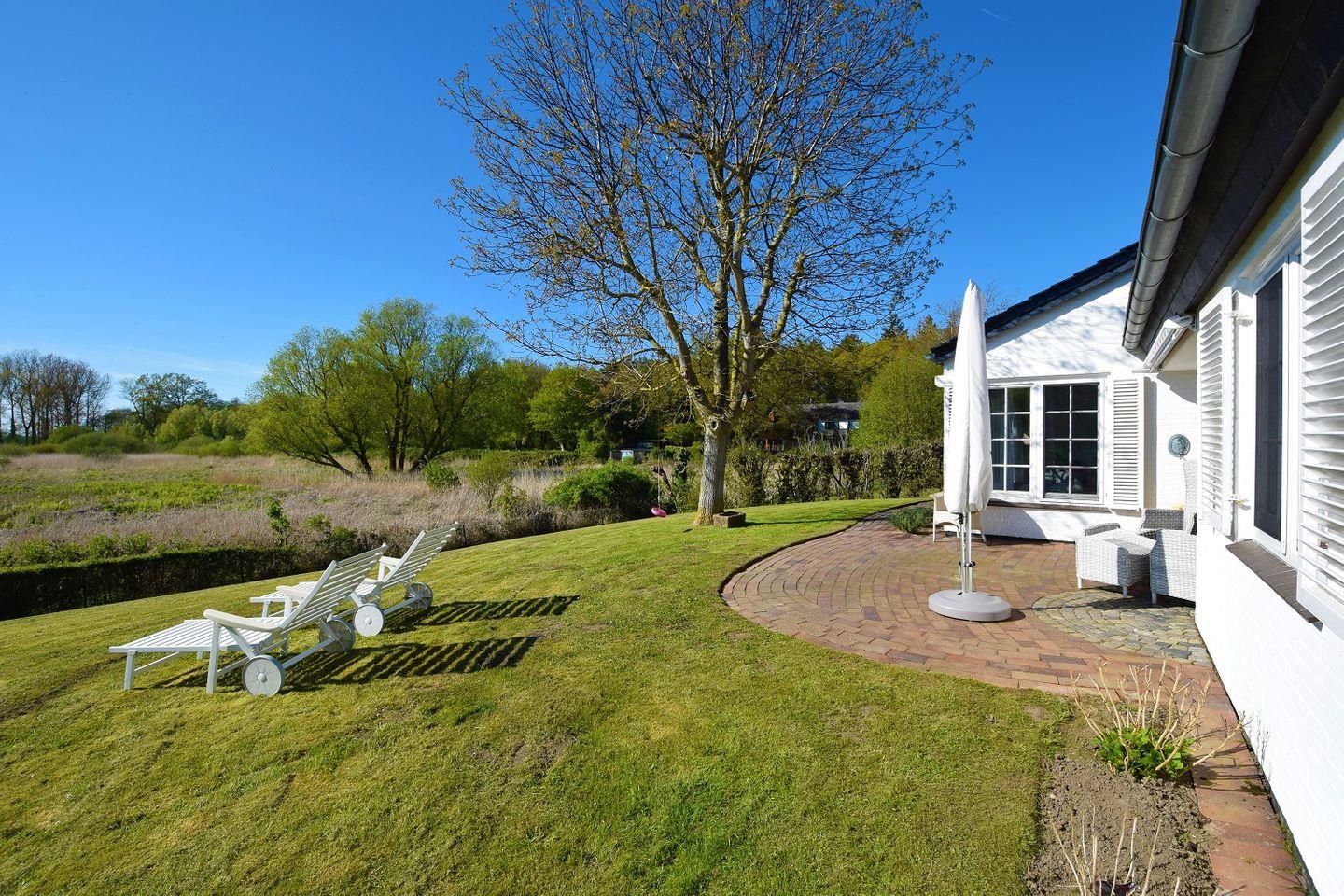Das Ferienhaus Lerchensang: Perfekter Rückzugsort für einen erholsamen Urlaub. Traumhafte Lage mit einzigartigem Ausblick ins Naturschutzgebiet. Vollständig umzäunter Garten. 3 Schlafzimmer mit Badezimmern bieten Privatsphäre. Charmanter Wohnbereich mit Sprossenfenstern. Großer Garten mit Liegewiese. Strandnähe. Ruhe, Entspannung und Naturgenuss