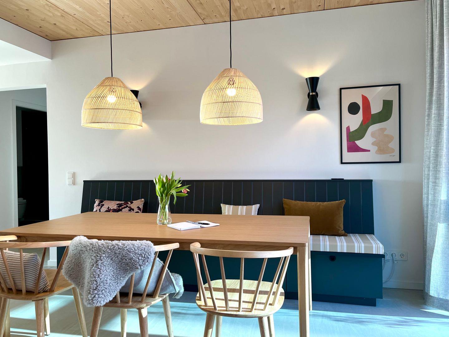 Außerdem hat die Ferienwohnung kostenloses schnelles WLAN, einen Smart-TV und eine komplette Küchenausstattung. Die Inneneinrichtung vereint natürliche Materialien, wunderschöne Farbtöne und zeitloses Design. Ein intelligentes Schließsystem mit PIN-Code macht den Check-In flexibel. Jedes Apartment verfügt außerdem über zusätzlichen Stauraum im Keller.