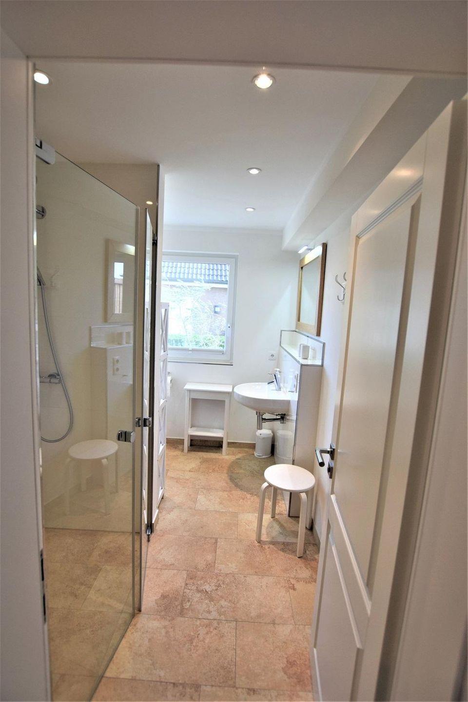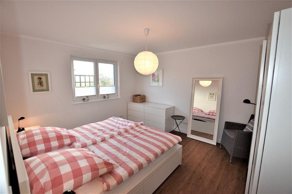 Die 3-Zimmer Ferienwohnung ist für 4 Personen ausgelegt. Sie besteht aus einem offenen Wohn- Essbereich mit integrierter Küche, zwei Schlafzimmern mit Doppelbetten (180 x 200 cm) und Bad mit bodengleicher großer Dusche, WC und Föhn. Gäste WC sowie Abstellkammer mit Waschmaschine.