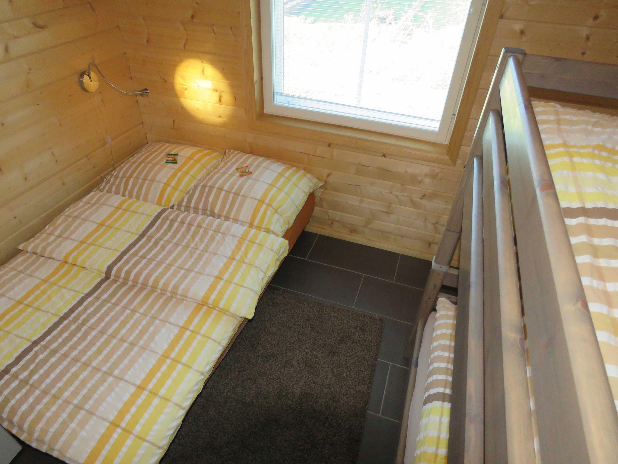 Der hochwertig eingerichtete Wohnraum verfügt über eine gemütliche Sitzecke und Essplatz mit integrierter Küche (Ceran-Kochfeld, Backofen, Kühlschrank/Gefrierfach, Spülmaschine). Das Badezimmer ist mit einer ebenerdigen Dusche und WC ausgestattet. Das Haus verfügt über einen Schlafraum mit einem Doppelbett und einen Schlafraum mit einem Etagenbett, über einen SAT-Fernsehanschluss (abweichend von den übrigen Ferienhäusern im Feriendorf) sowie einen kostenfreien WLAN-Anschluss. Ein Abstellraum befindet sich innerhalb des Hauses. Der Hauseingang und die möblierte Terrasse sind überdacht. Nichtraucherhaus - Haustiere erlaubt - Brötchenservice von Ostern bis Oktober!