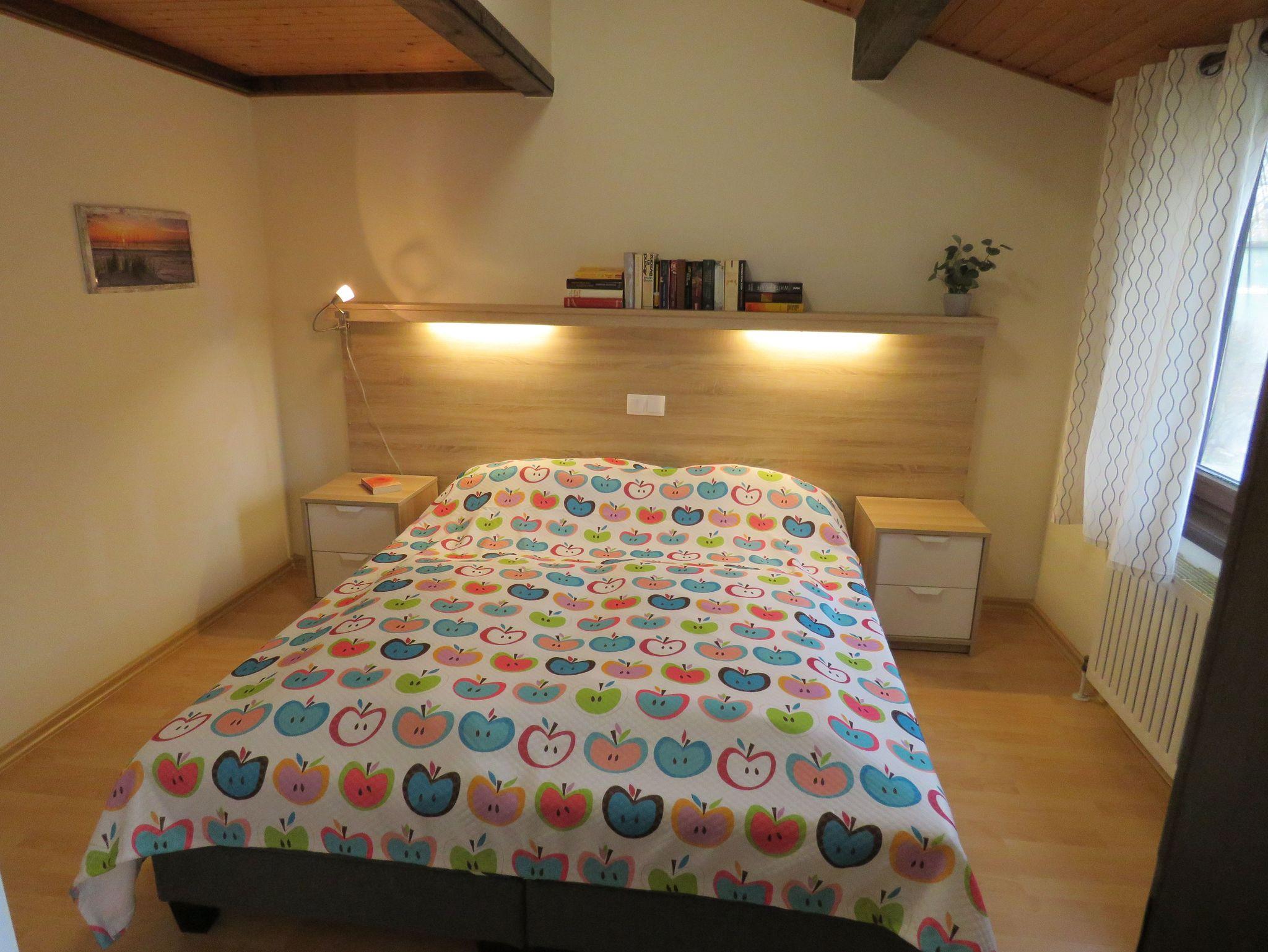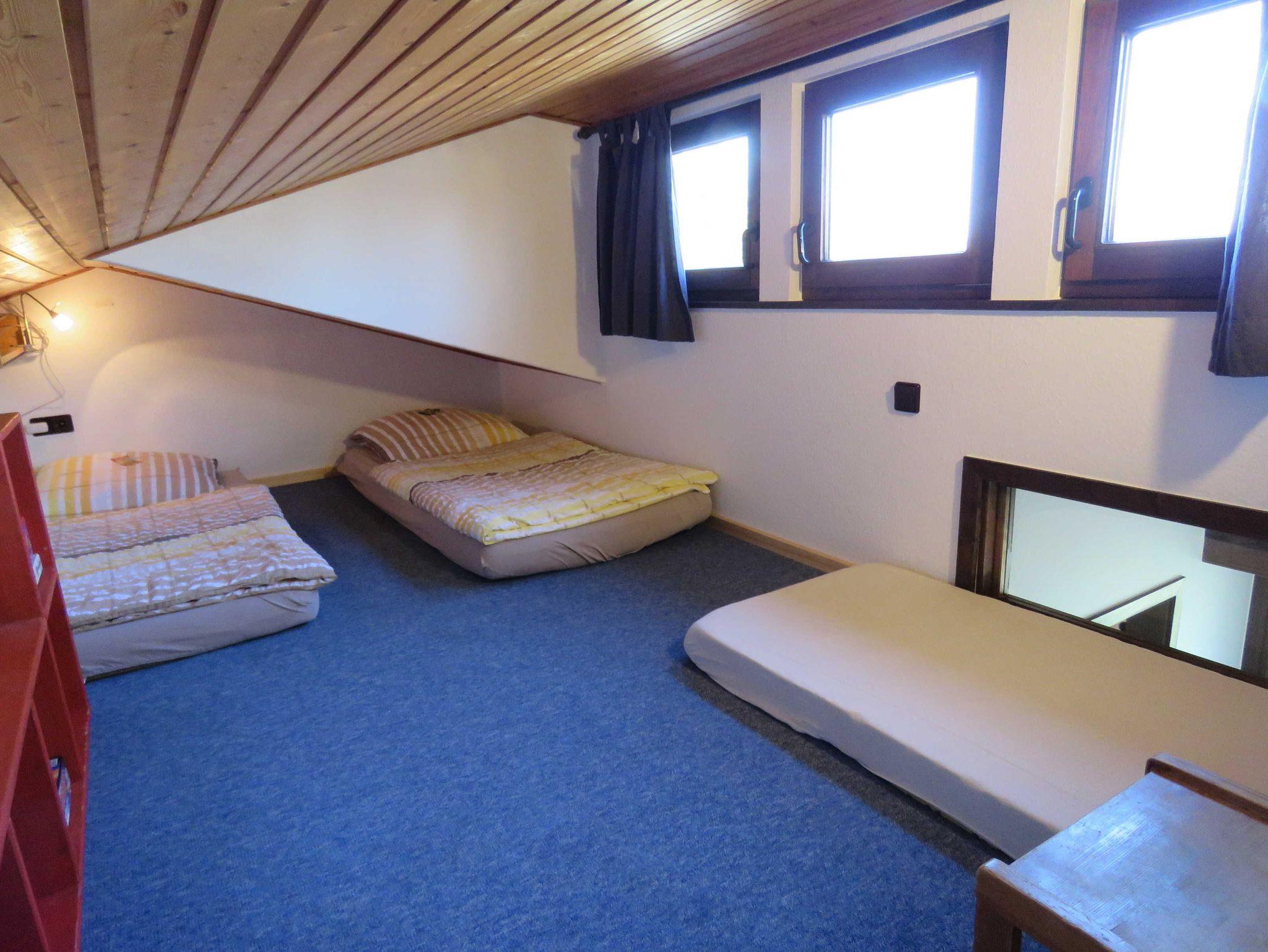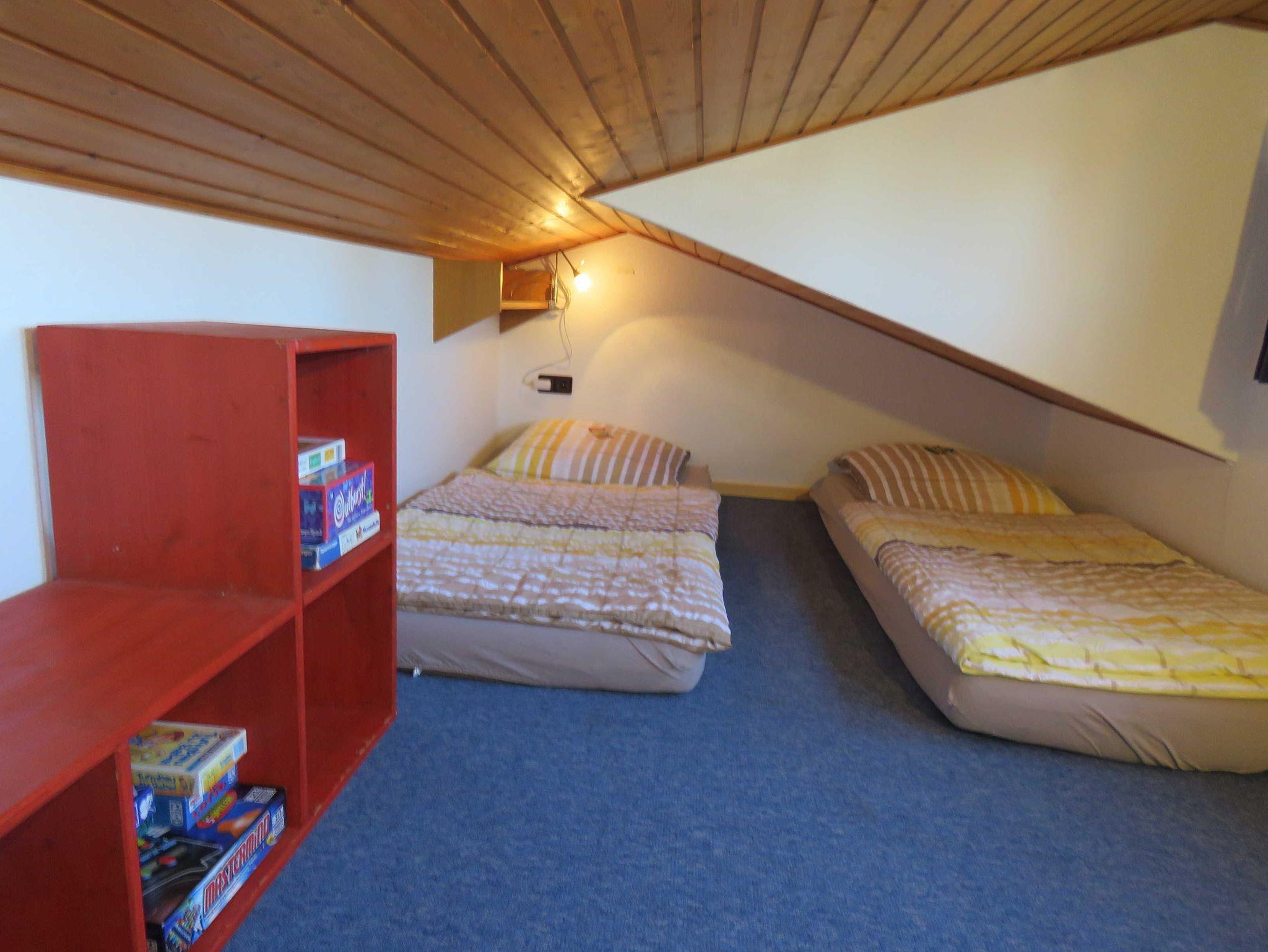Die Koje unterm Dach bietet 2 Schlafgelegenheiten (Matratzen) und eignet sich für größere Kinder.