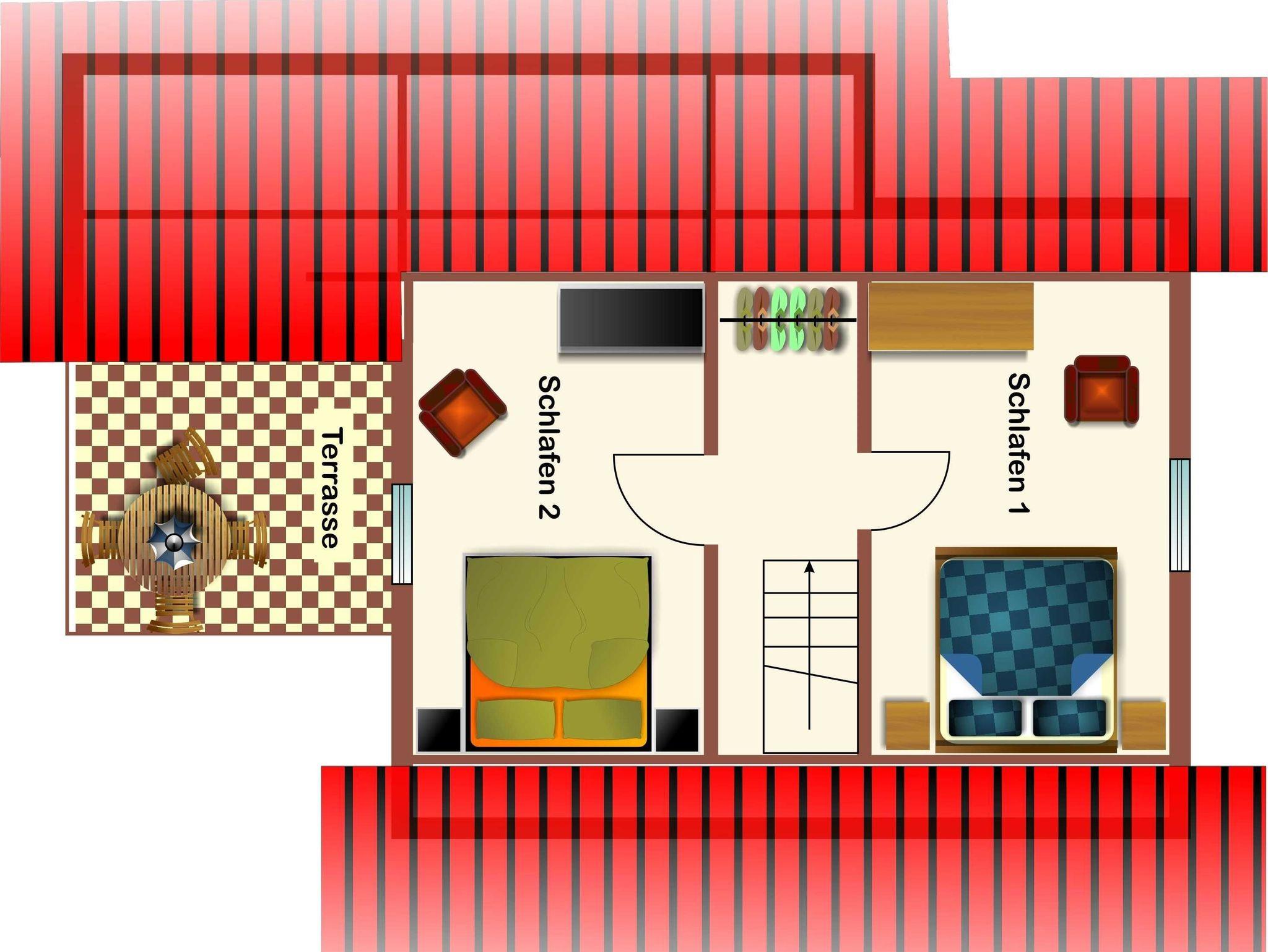 Die Ferienhäuser vom Typ Deichgraf 65 verfügen über eine Wohn-/Nutzfläche von ca. 65 m² und können mit bis zu 6 Personen belegt werden (+ 1 Kleinkind im Kinderreisebett). Im Erdgeschoss befinden sich das Badezimmer (Dusche/WC), die Küche (Ceran-Kochfeld/Backofen, Kühlschrank/Gefrierfach, teilweise Mikrowelle und Spülmaschine), der Essplatz und der Wohnraum mit Schlafcouch. Zugang zur möblierten Terrasse und außenliegendem Abstellraum vom Wohnzimmer. Im Obergeschoss befinden sich 2 Schlafräume mit jeweils einem Doppelbett oder 2 Einzelbetten. Nichtraucherhaus - kostenloses WLAN - Haustiere erlaubt - Brötchenservice von Ostern bis Oktober!