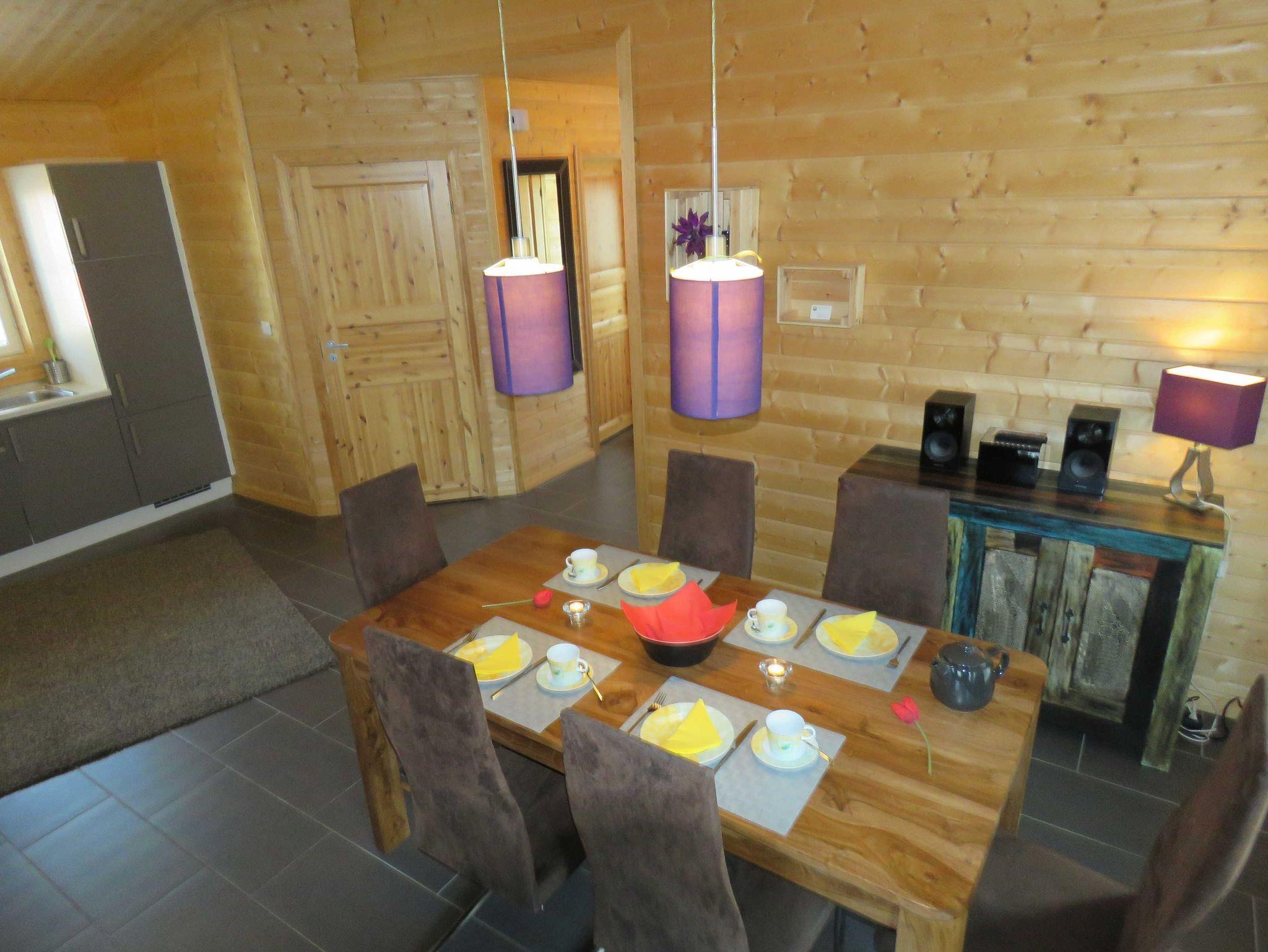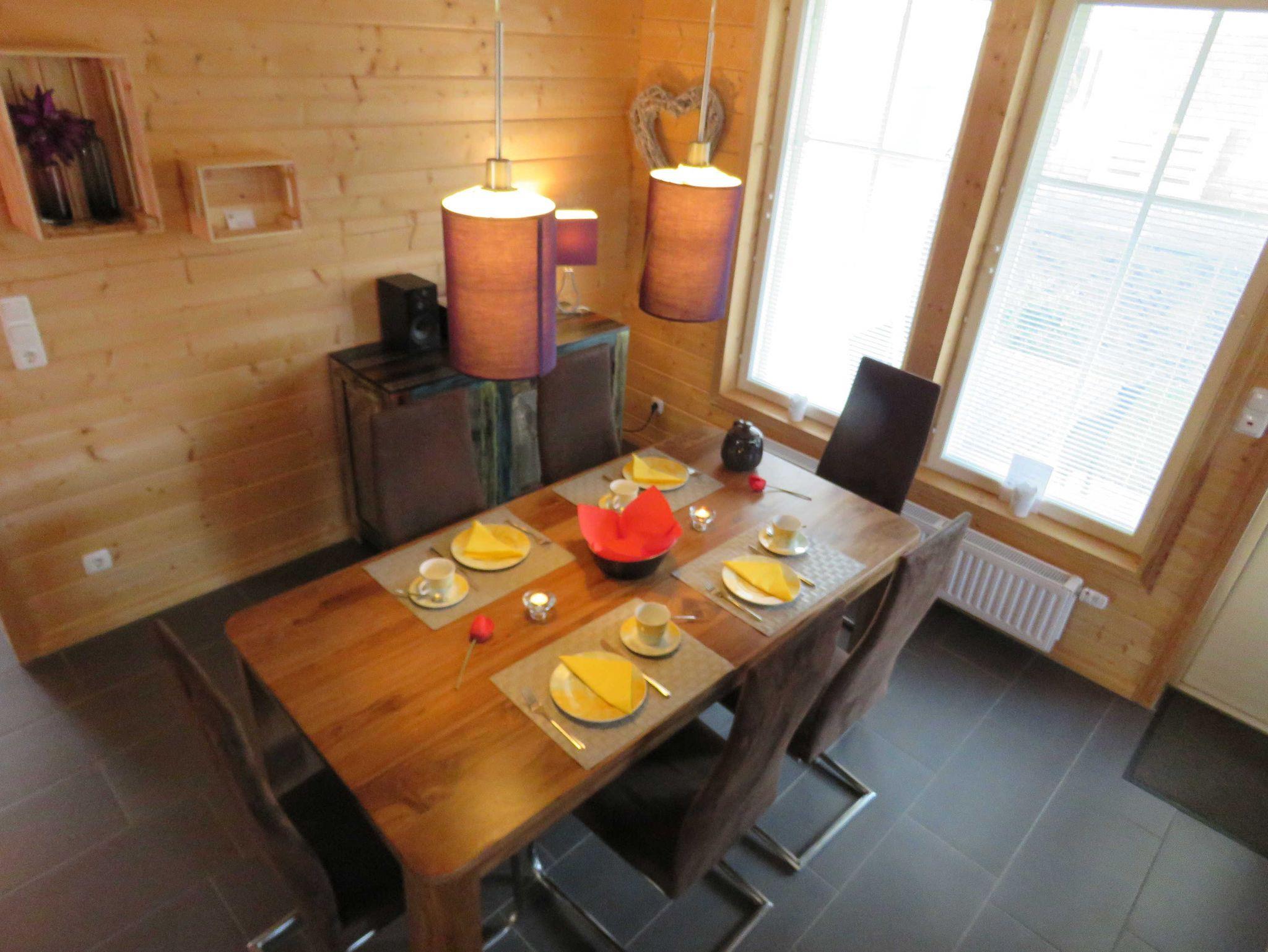 Das ebenerdige Premiumhaus 4, Nordland, wurde im Jahr 2014 im finnischen Stil, in kompletter Holzbauweise, erbaut. Es verfügt über ca. 60 m² Wohn-/Nutzfläche und kann mit bis zu 4 Personen (+1 Kleinkind im Kinderreisebett) belegt werden. Der hochwertig eingerichtete Wohnraum verfügt über eine gemütliche Sitzecke und Essplatz mit integrierter Küche (Ceran-Kochfeld, Backofen, Kühlschrank/Gefrierfach, Spülmaschine). Das Badezimmer ist mit einer ebenerdigen Dusche und WC ausgestattet. Das Haus verfügt über einen Schlafraum mit einem Doppelbett, einen Schlafraum mit 2 Einzelbetten, einen SAT-Fernsehanschluss (abweichend von den übrigen Ferienhäusern im Feriendorf) sowie einen kostenfreien WLAN-Anschluss. Ein Abstellraum befindet sich innerhalb des Hauses. Der Hauseingang und die möblierte Terrasse sind überdacht. Nichtraucherhaus - Haustiere erlaubt - Brötchenservice von Ostern bis Oktober!