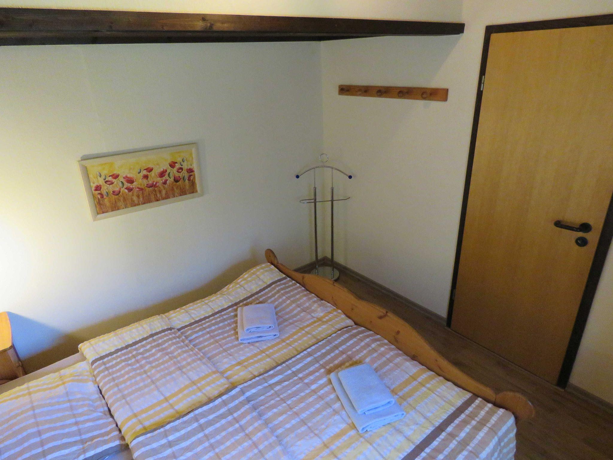 Die Koje unterm Dach bietet 2 Schlafgelegenheiten (Matratzen) und eignet sich für größere Kinder.