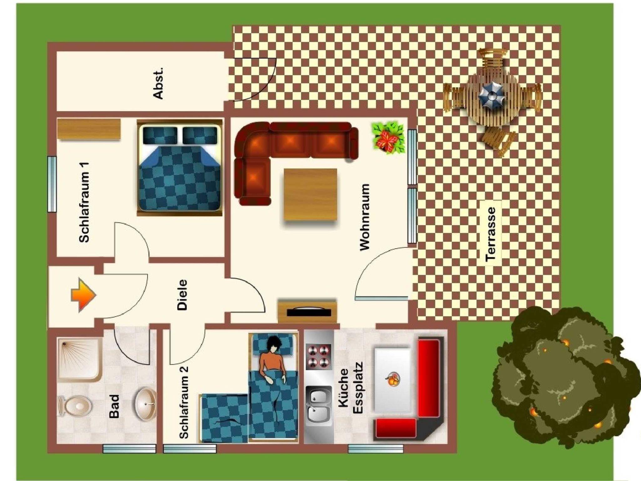 Unsere gemütlichen, ebenerdigen Ferienhäuser vom Typ Scout 48 bieten Ihnen eine Wohn-/Nutzfläche von ca. 48 m² und können teilweise mit bis zu 5 Personen (+1 Kleinkind im Kinderreisebett) belegt werden (bitte Beschreibung der einzelnen Wohneinheiten beachten). Die Häuser verfügen über 2 Schlafräume (Ausstattung s. Wohneinheiten), ein Badezimmer (Dusche/WC), einen außenliegenden Abstellraum und ein Wohnzimmer (teilweise mit Schlafcouch) mit angrenzender Küche (4-Plattenherd/Backofen, tlws. Ceran-Kochfeld, Kühlschrank/Gefrierfach, teilweise Mikrowelle und Spülmaschine) mit Essplatz. Zugang zur möblierten Terrasse vom Wohnzimmer. Nichtraucherhäuser - kostenloses WLAN - Haustiere und Monteure nicht erlaubt - Brötchenservice von Ostern bis Oktober!