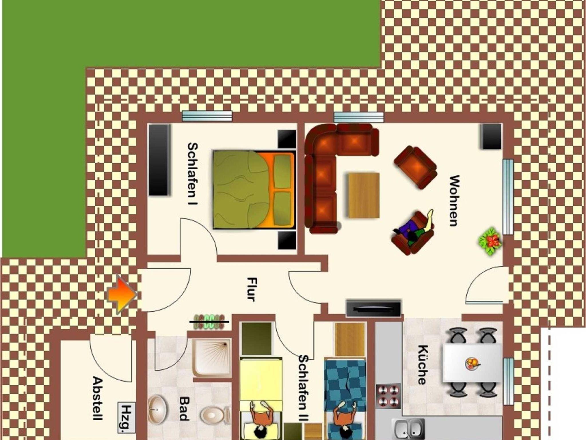 Das massiv errichtete, ebenerdige Ferienhaus 317, vom Typ Kogge, befindet sich im absolut autofreien Teil unseres schönen Feriendorfes - ruhige Randlage mit Blick auf die Wettern und einen alten Obsthof. Das Haus verfügt über ca. 60 m² Wohn-/Nutzfläche und kann mit bis zu 6 Personen (+1 Kleinkind im Kinderreisebett) belegt werden. Das Ferienhaus bietet Ihnen neben einem Schlafraum mit einem Doppelbett, einem Schlafraum mit einem Einzelbett und einem Doppelstock-/Etagenbett, einem Badezimmer (Dusche / WC) und einem Abstellraum (mit kleinem Gefrierschrank) ein geräumiges Wohnzimmer (mit Schlafcouch) mit offener Küche (Ceran-Kochfeld/Backofen, Kühlschrank, Mikrowelle, Spülmaschine) und Essplatz. Zugang zur möblierten Terrasse vom Wohnzimmer. Für den Gepäcktransport steht im Abstellraum ein Kofferwagen zur Verfügung. Nichtraucherhaus - kostenloses WLAN - Haustiere erlaubt - Brötchenservice von Ostern bis Oktober!