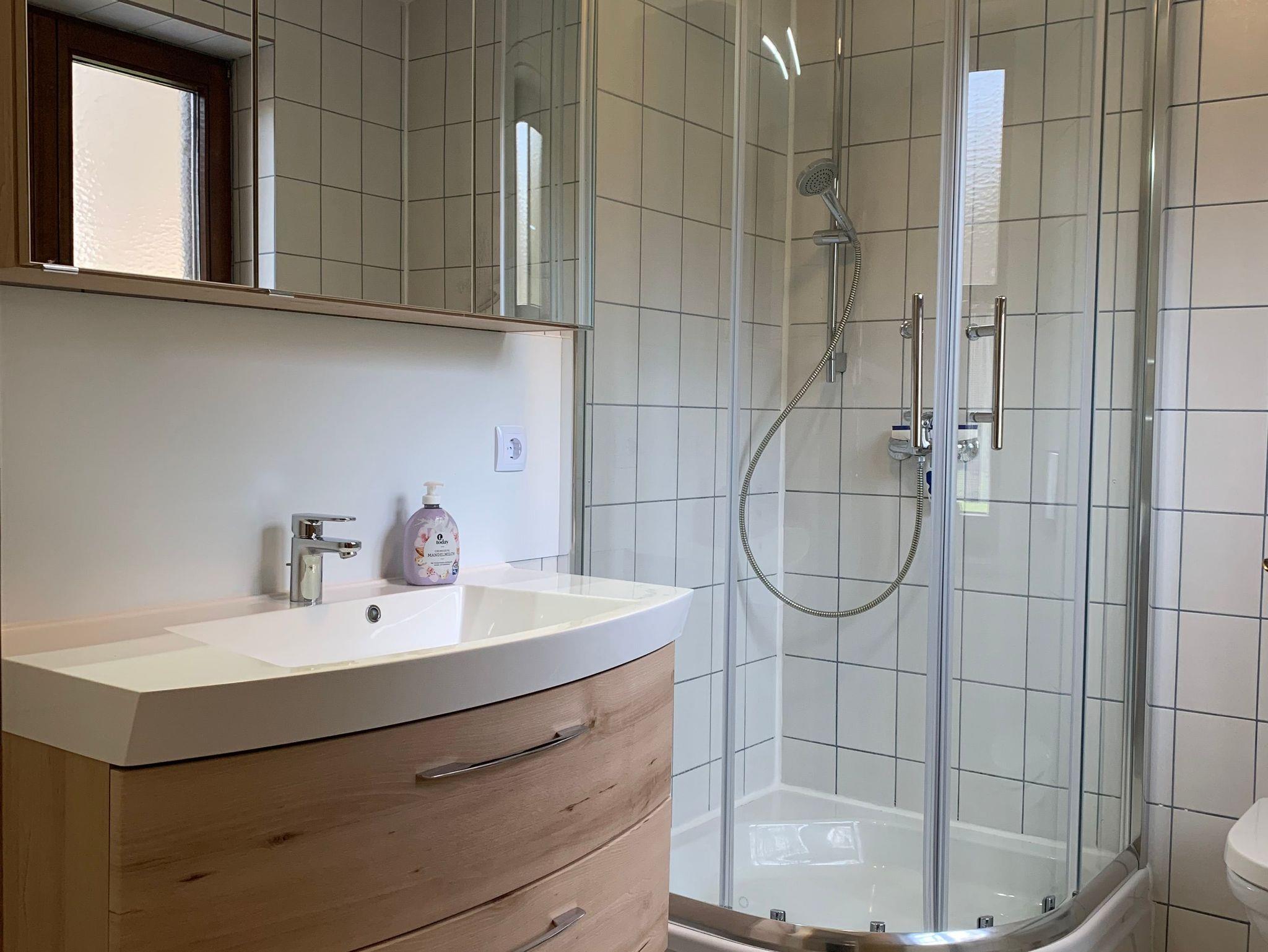 Im Badezimmer steht Ihnen eine Dusche, ein Kosmetikspiegel sowie ein Föhn zur Verfügung.
