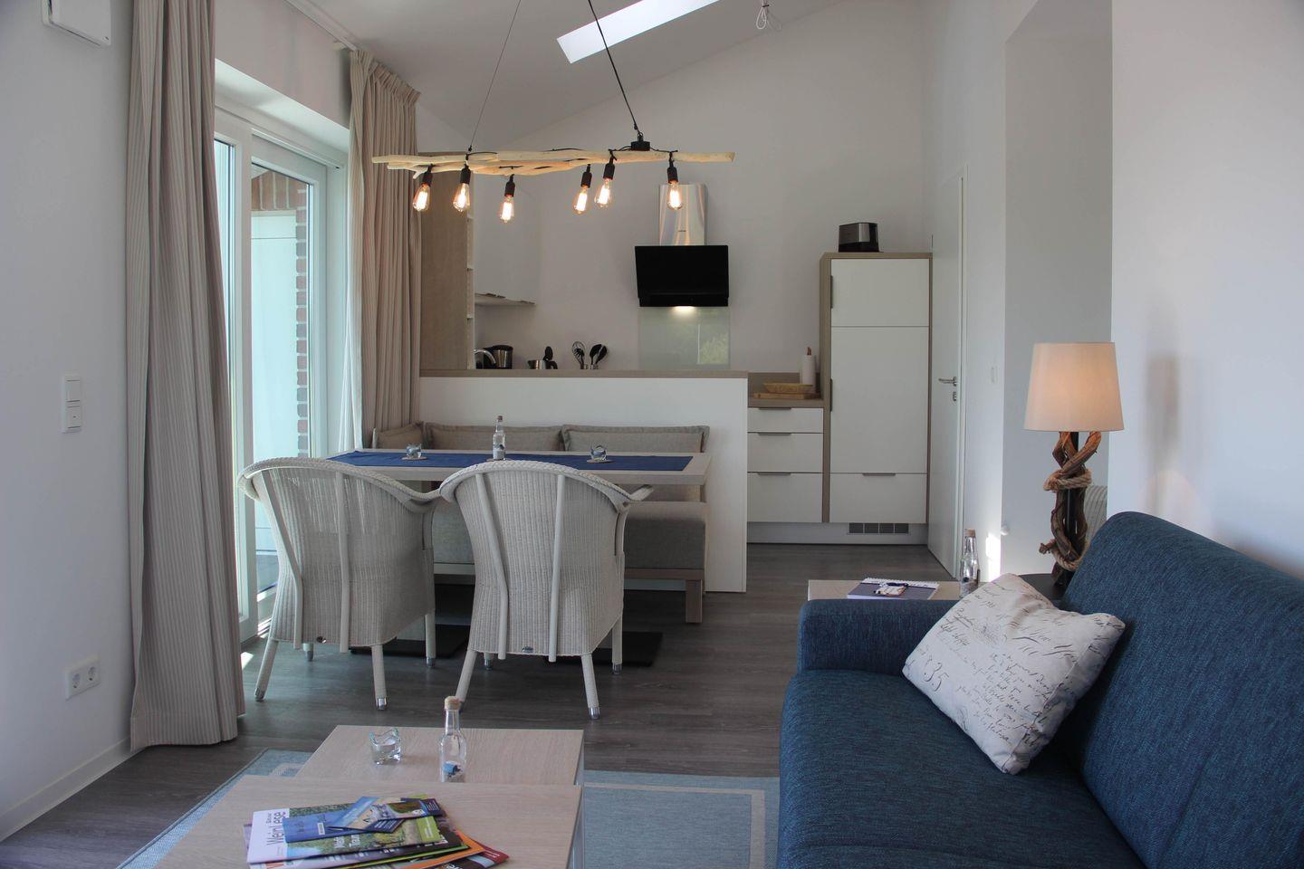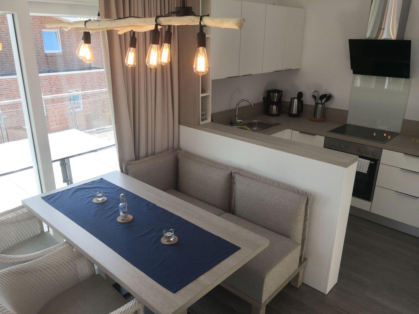 Penthousewohnung "Meeresrauschen" in Hooksiel: stilvoll, barrierearm, mit Balkon, Grill, WLAN und Infrarotwärmekabine für 4 Personen.