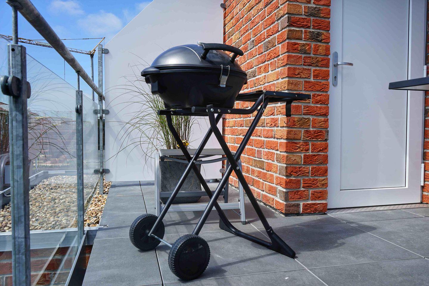 Der großzügige Balkon ist mit Grill und Gartenmöbeln ausgestattet.
