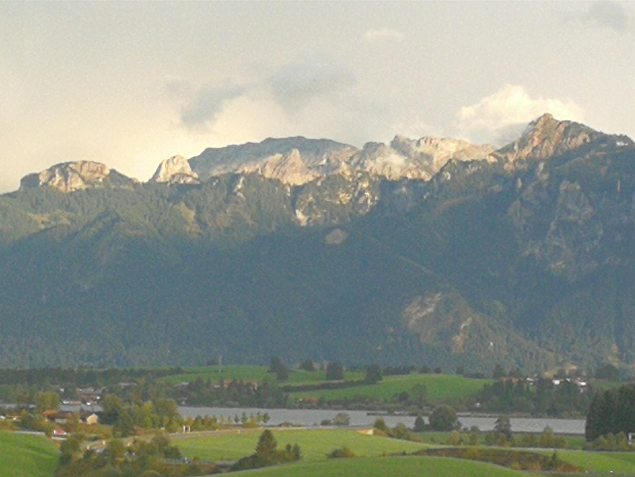 Ferienwohnung Bergpanorama, Hopfenseeblick, 2 Schlafräume, Balkon, I. Stock