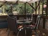In der Nähe eines Bahnübergangs idyllisch am Waldrand gelegener, modern eingerichteter Bungalow, in großer gepflegter Gartenanlage (5000 m²), durch Hecken und Gebüsch vom Haupthaus abgegrenzt, in dem der Eigentümer wohnt.