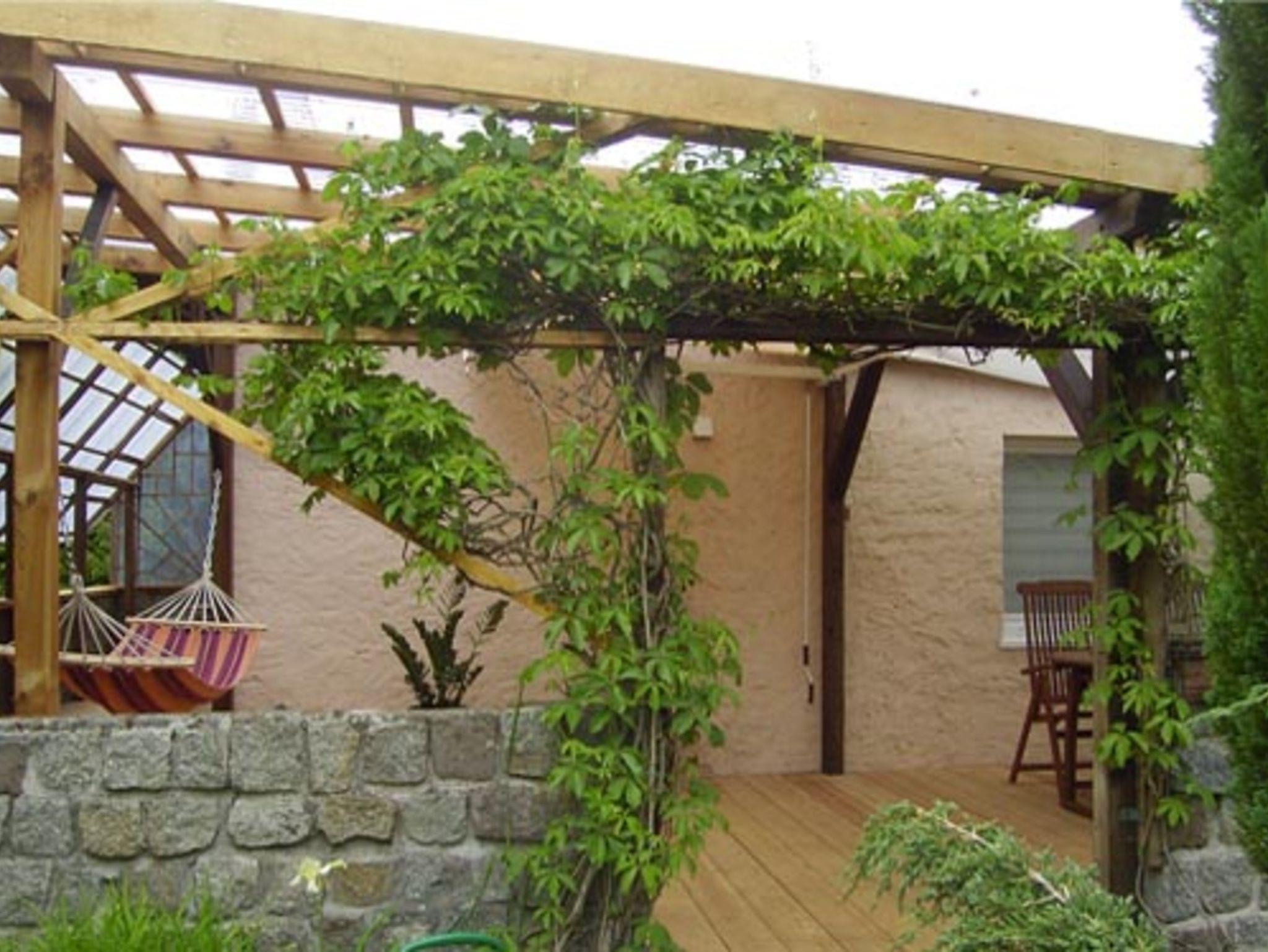 Wohnraum und separates Schlafzimmer mit Doppelbett, überdachte möblierte Terrasse mit gemütlicher Hängematte und Grillmöglichkeit (Elektrogrill). Carport-Stellplatz beim Haus...