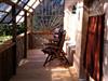 überdachte Terrasse mit Sitzecke und Hängematte, Wäscheständer