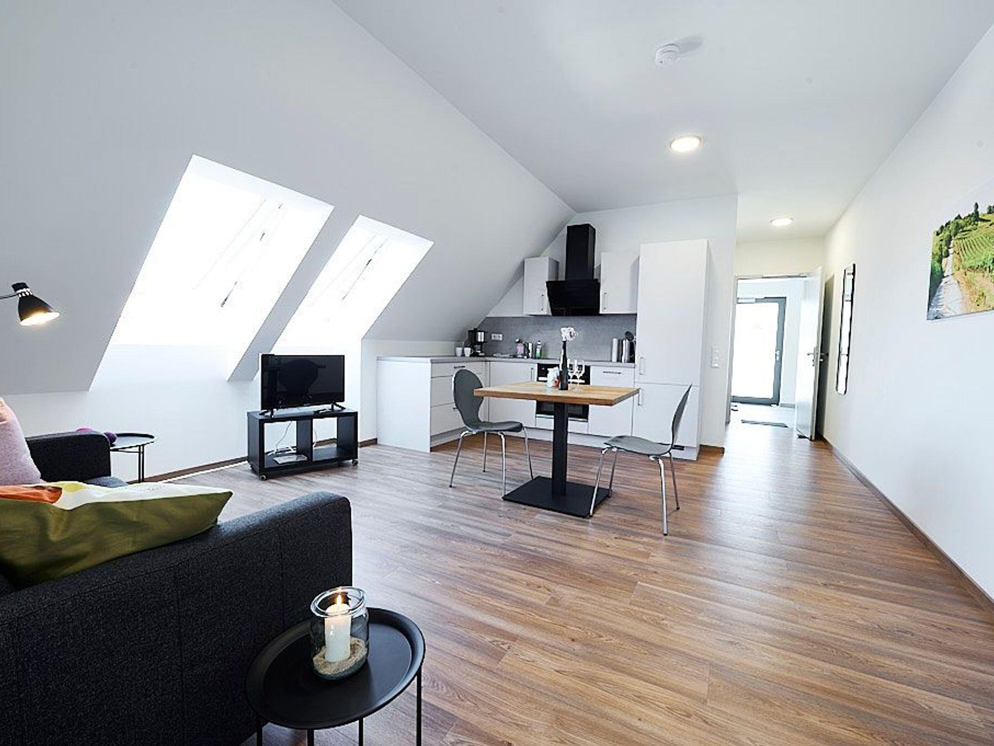Die modern eingerichtete Ferienwohnung liegt im zweiten Stock unseres Neubaus. Dank der Erdwärmeheizung, Kühlung und der PV-Anlage ist die Klimatisierung CO2 neutral! Die dreifach verglasten Fenster, sind alle mit Rolläden zu verdunkeln. Bei schönem Wetter können Sie sich in unserem Innenhof oder auf unserem Gartengrundstück entspannen. Insgesamt haben wir 3 Ferienwohnungen, die wir vermieten. Fewo Riesling (3 Personen max.), Fewo Silvaner (2 Personen max.) und Fewo Grauburgunger (4 Personen max.). Des weiteren haben wir eine wunderschöne, gemütliche Vinothek, in der wir regelmäßig Weinproben anbieten. Gerne auch auf Nachfrage.Eine Möglichkeit zum Aufladen eines E-Bikes besteht außerdem auch noch.