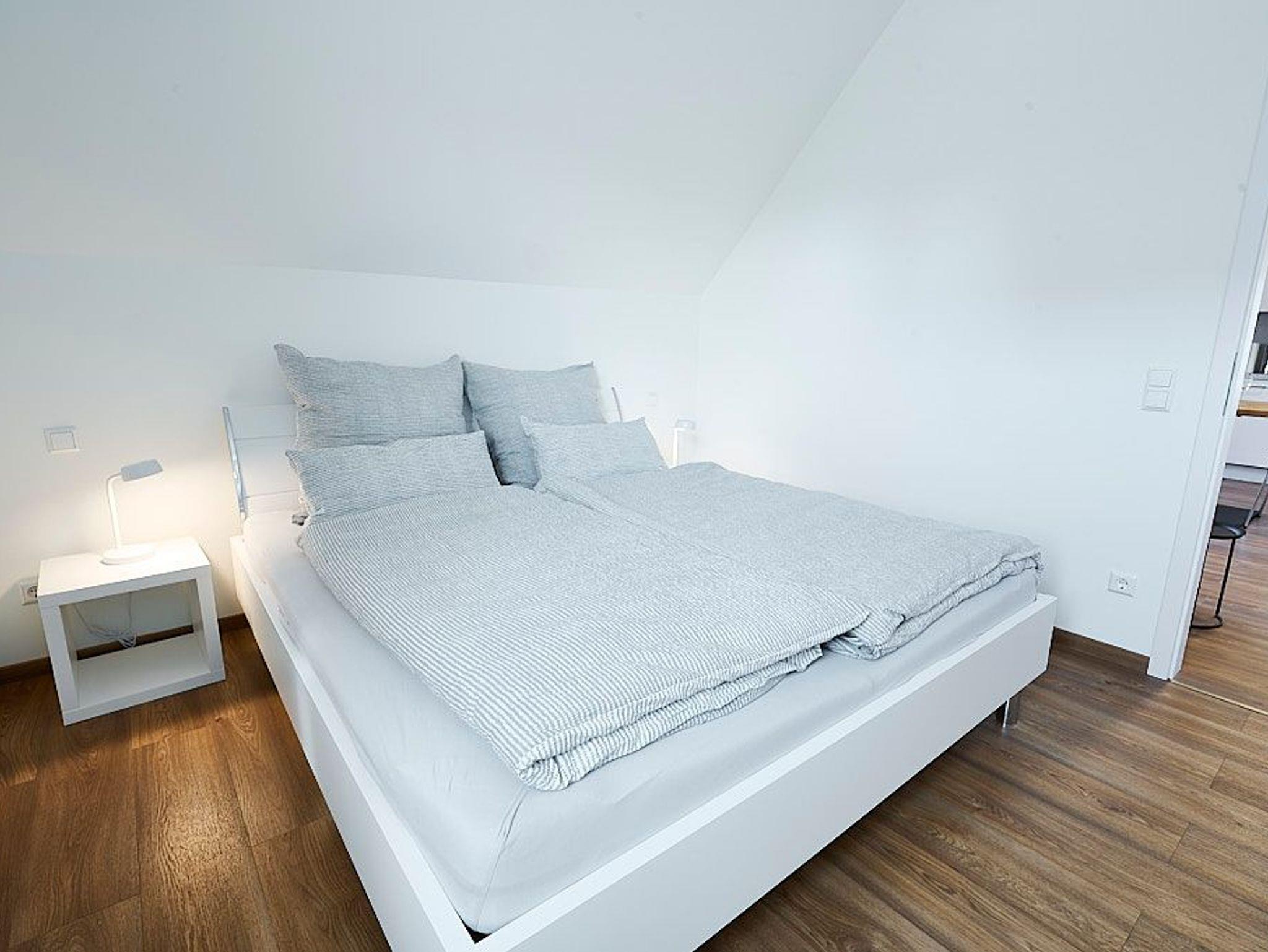 Wohnzimmer mit Couch und separatem Schlafsofa, Schlafzimmer mit Doppelbett und Kleiderschrank, Badzimmer mit Dusche, voll ausgestattete Küche (Spülmaschine, Wasserkocher, Kaffeemaschine, Kühlschrank uvm., Essbereich mit Tisch und 2 Stühlen)