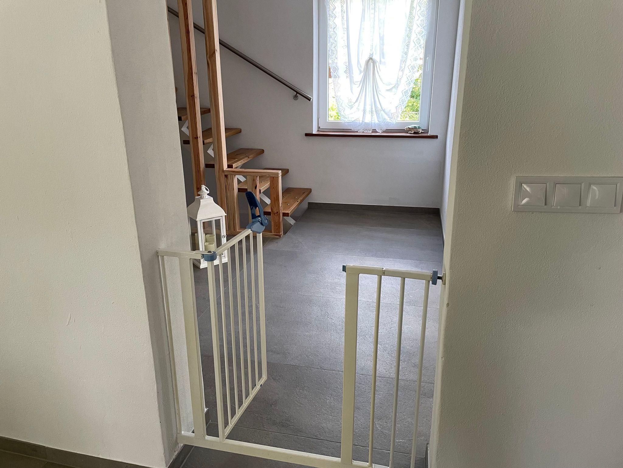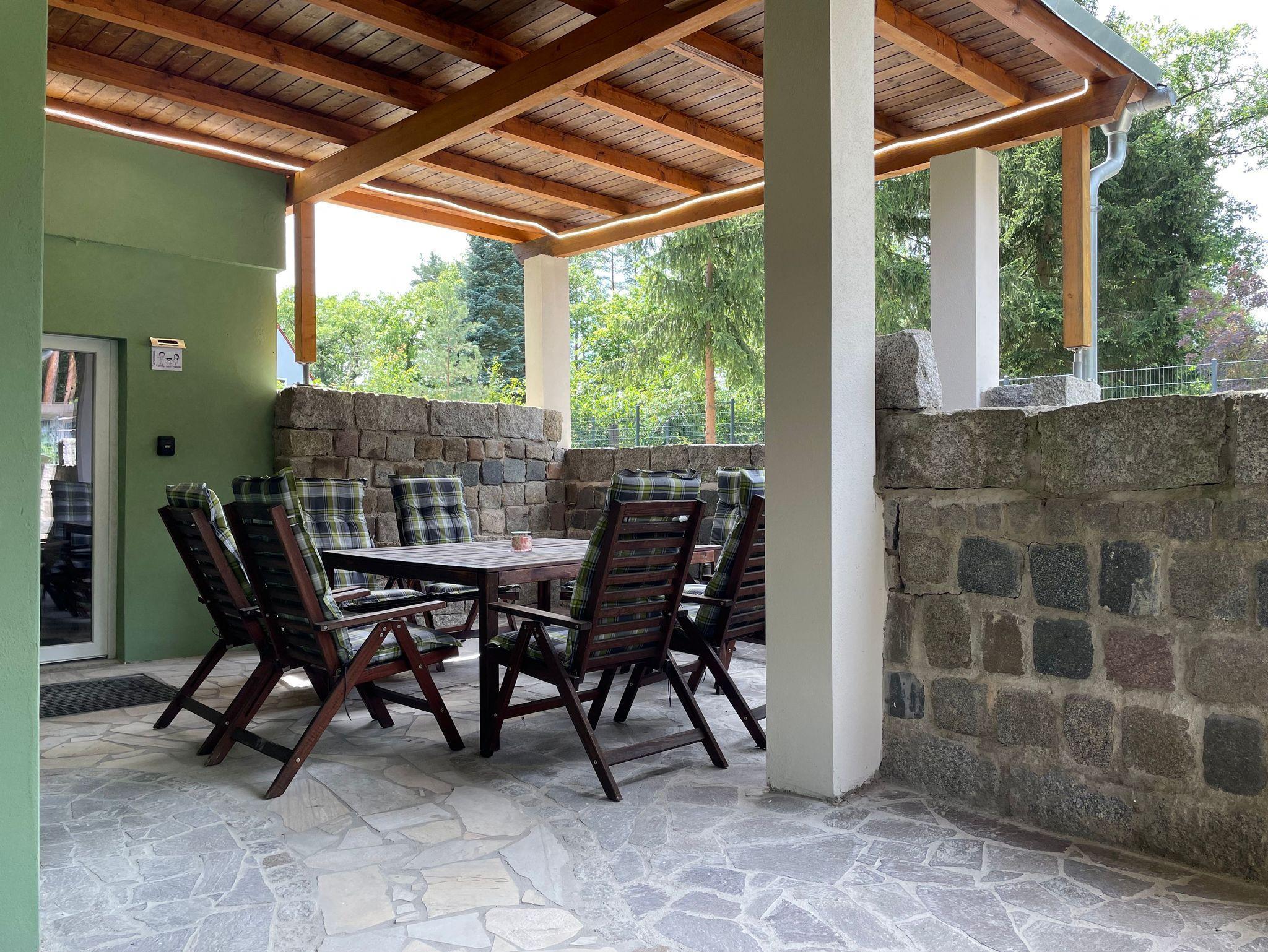 Es verfügt über umzäunten Garten mit einer gemütlichen Sitzecke auf der Terrasse, welche zum Entspannen und Genießen der ruhigen Umgebung einlädt. Zudem steht den Gästen im Keller eine Sauna zur Verfügung.