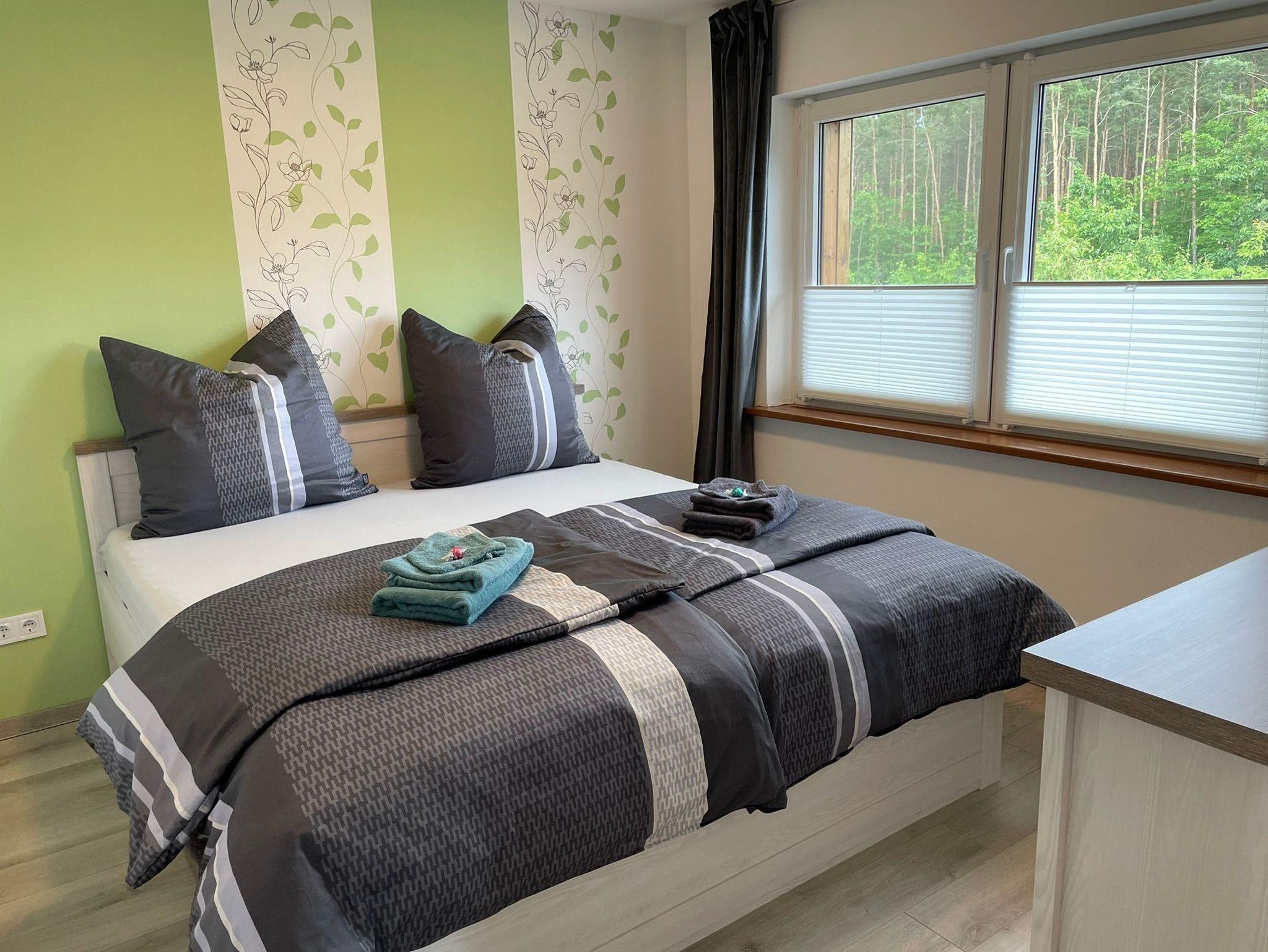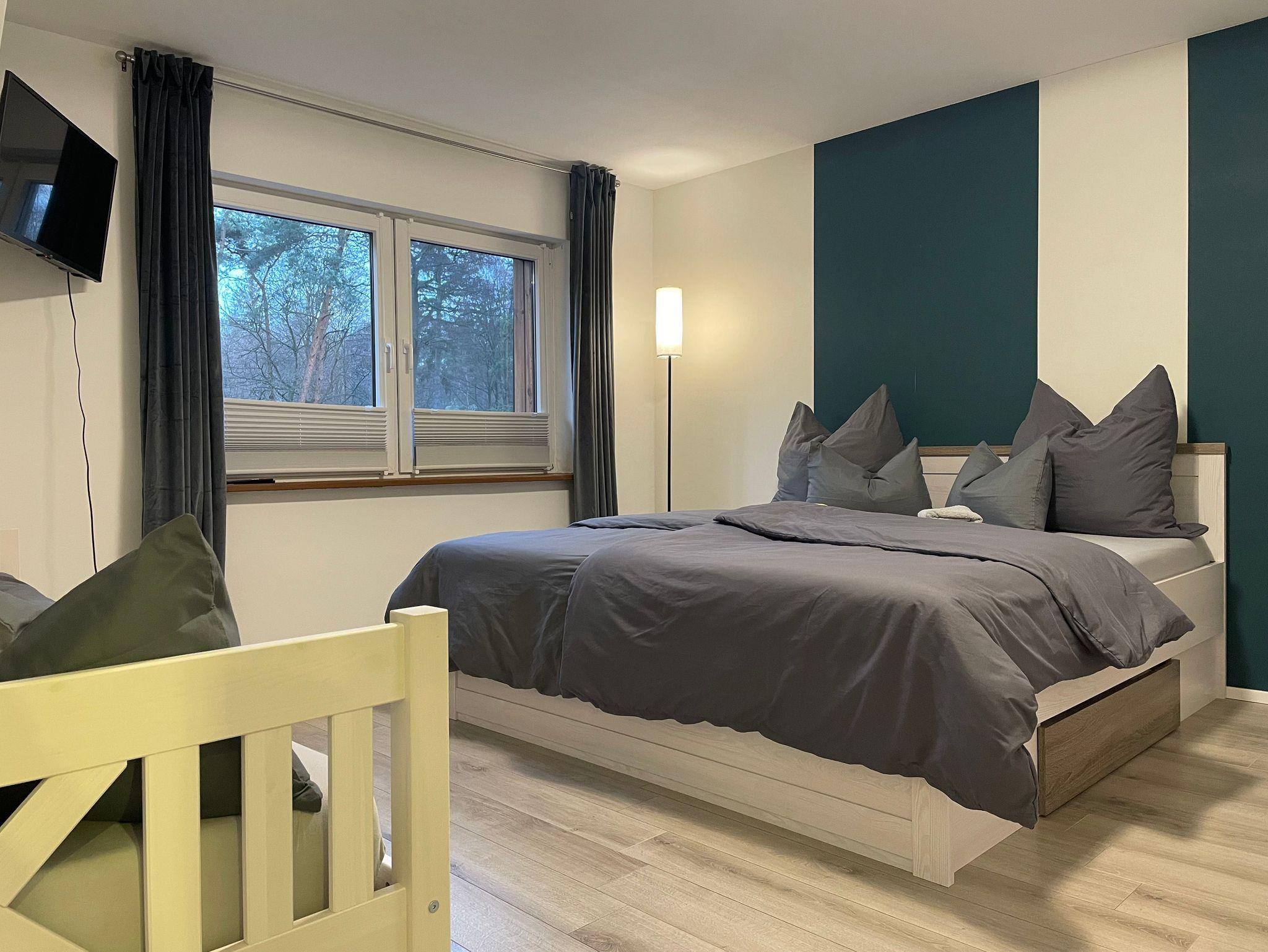 Das kleinere Schlafzimmer verfügt über ein Doppelbett und einen Schrank. Die beiden anderen Zimmer sind jeweils mit einem Doppelbett und einem Ausziehbett ausgestattet. Außerdem befindet sich in allen Schlafzimmern ein Smart TV.