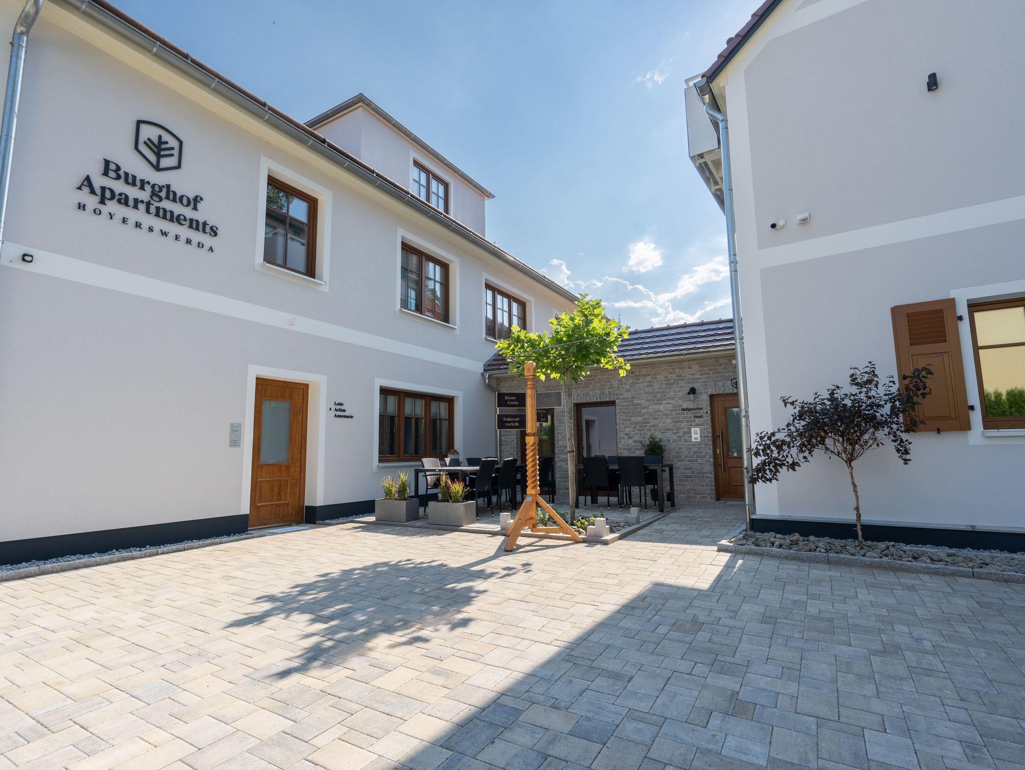 Herzlich willkommen bei uns in den Burghof Apartments Hoyerswerda. Wir starteten im Juni 2022 mit der Vermietung unserer 7 wunderschönen, neu gebauten Ferienwohnungen im Herzen der Altstadt von Hoyerswerda. Unsere im modernen Landhausstil eingerichteten Wohnungen verfügen über sämtliche Annehmlichkeiten, um Ihnen einen unbeschwerten Urlaub zu ermöglichen. Im Außenbereich stehen unseren Gästen überdachte Sitzbereiche zur Verfügung. In grüner Umgebung ist man dennoch in wenigen Gehminuten im Herzen der Altstadt mit Zoo, Schloss und Marktplatz. Unsere modernen Ferienwohnungen verfügen allesamt über eine voll ausgestattete Küche und Kaffee, Zucker, Salz & Pfeffer stehen bereits für Sie bereit. Alle Wohnungen bieten für die warmen Monate eine Bodenkühlung, mit der es auch an heißen Tagen angenehm kühl bleibt.