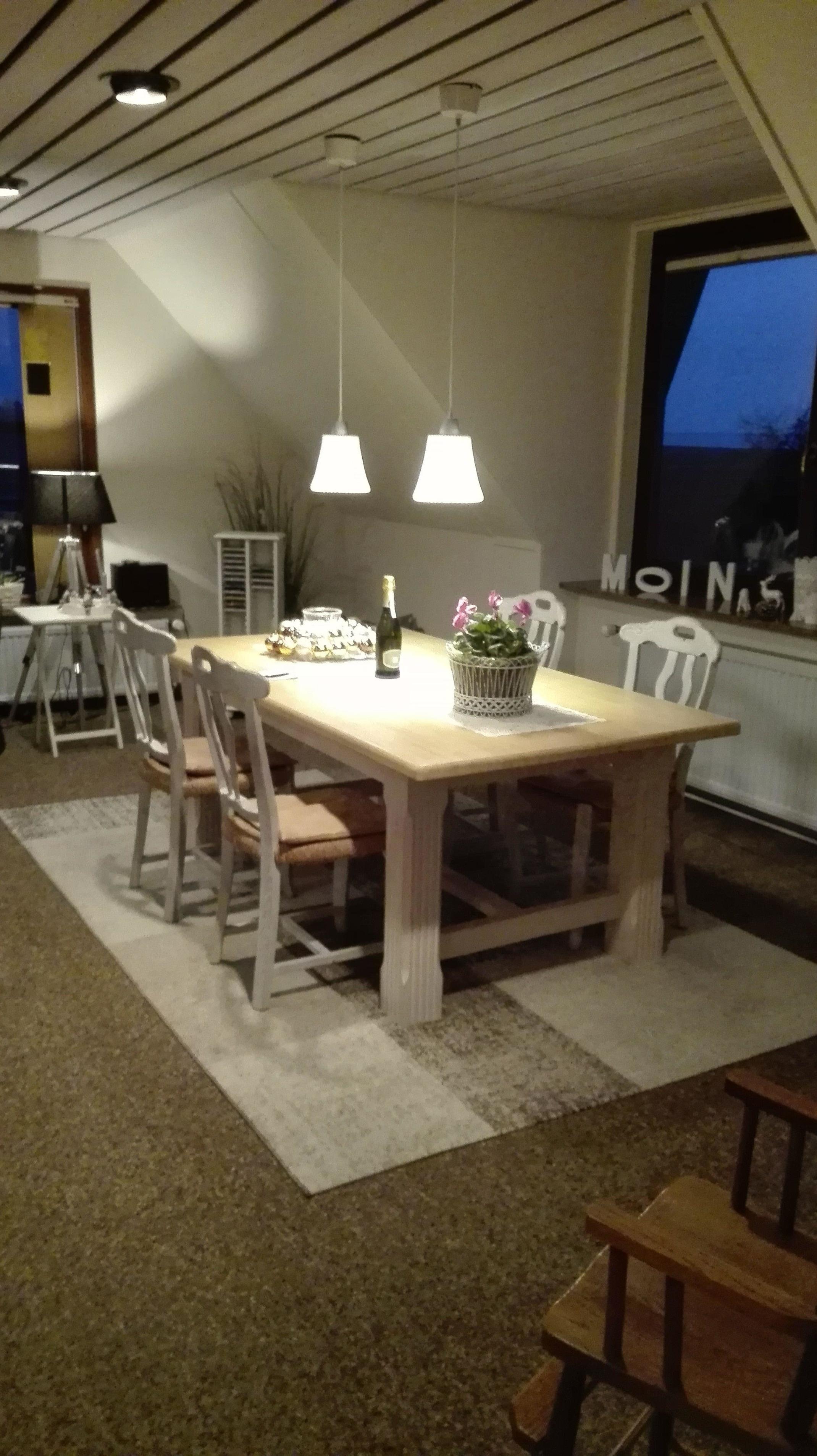 Die Wohnfläche von 140qm teilt sich in Einbauküche mit Spülmaschine, Ess-/Wohnbereich mit großem Familientisch, wovon Sie den direkten Blick auf die Nordsee über die Husumer Bucht hinweg nach Süderhafen auf Nordstrand genießen können. Die Loggia mit Blick zur Nordsee ist ideal zum "Schmöken" ! Die beiden Schlafzimmer, Elternschlafzimmer mit großem Doppelbett, im Winter mit Blick zur Nordsee, das kleinere Schlafzimmer mit teilbarem Boxspringbett 160x 200 m sind ideal zum Stressabbau! Das Badezimmer mit extragroßer Rainshowerdusche, Waschmaschine, großer Waschtisch. Die Wohnung befindet sich im 1. Stock und ist über eine bequeme Außentreppe zu erreichen! (Hundefreundlicher Treppenbelag) Bettwäsche und Handtücher können gegen eine Gebühr ( Bettwäsche 10.- und 5.-€ für die Handtücher pro Person bereitgestellt werden !!!