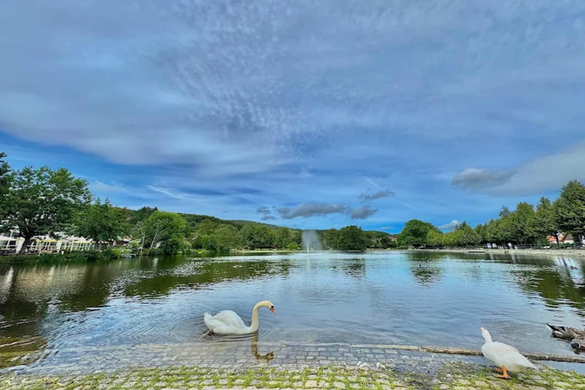 Diese gemütliche Erdgeschosswohnung in Ilsenburg ist ideal für Familien, die Natur und Komfort suchen. Nur 600 Meter vom Stadtzentrum entfernt und umgeben von Wald, ist sie ein idealer Ausgangspunkt, um die Harzregion zu erkunden. Zu den nahegelegenen Sehenswürdigkeiten zählen der majestätische Brockengipfel, das romantische Ilsetal und das historische Schloss Wernigerode. Für kulturelle Highlights sorgen das Kloster Ilsenburg und das Luftfahrtmuseum, die faszinierende Erlebnisse bieten. Die Wohnung verfügt über ein geräumiges Wohnzimmer mit Sat-TV und Radio, eine große Küche mit modernen Geräten und ein familienfreundliches Schlafzimmer mit einem Doppelbett und einem Etagenbett. Das Badezimmer ist mit einer Badewanne mit Dusche ausgestattet, und die Zentralheizung sorgt ganzjährig für Komfort. Draußen erwartet Sie ein Gemeinschaftsgarten mit Spielgeräten, Trampolin, Sandkasten, Holzkohlegrill und Gartenmöbeln. Fahrradabstellplätze und Parkplätze auf dem Gelände sorgen für zusätzlichen Komfort. Umgeben von Waldwegen und nur 100 Meter von einem öffentlichen Schwimmbad entfernt, ist die Lage ideal für Outdoor-Abenteuer. Zu den nahegelegenen gastronomischen Einrichtungen gehören rustikale Spezialitäten wie „Zur Waldschänke“, frische Meeresfrüchte in Müllers Fisch- und Speisegaststätte und italienische Köstlichkeiten bei Pizza Italia.
