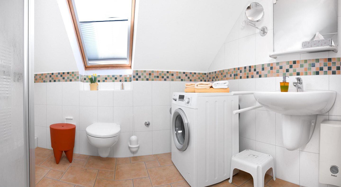 Die Bettdecken haben eine angenehme Kuschelgröße von 155 x 220 cm, so dass das Ausschlafen zu Freude wird. Im Bad steht auch die Waschmaschine.