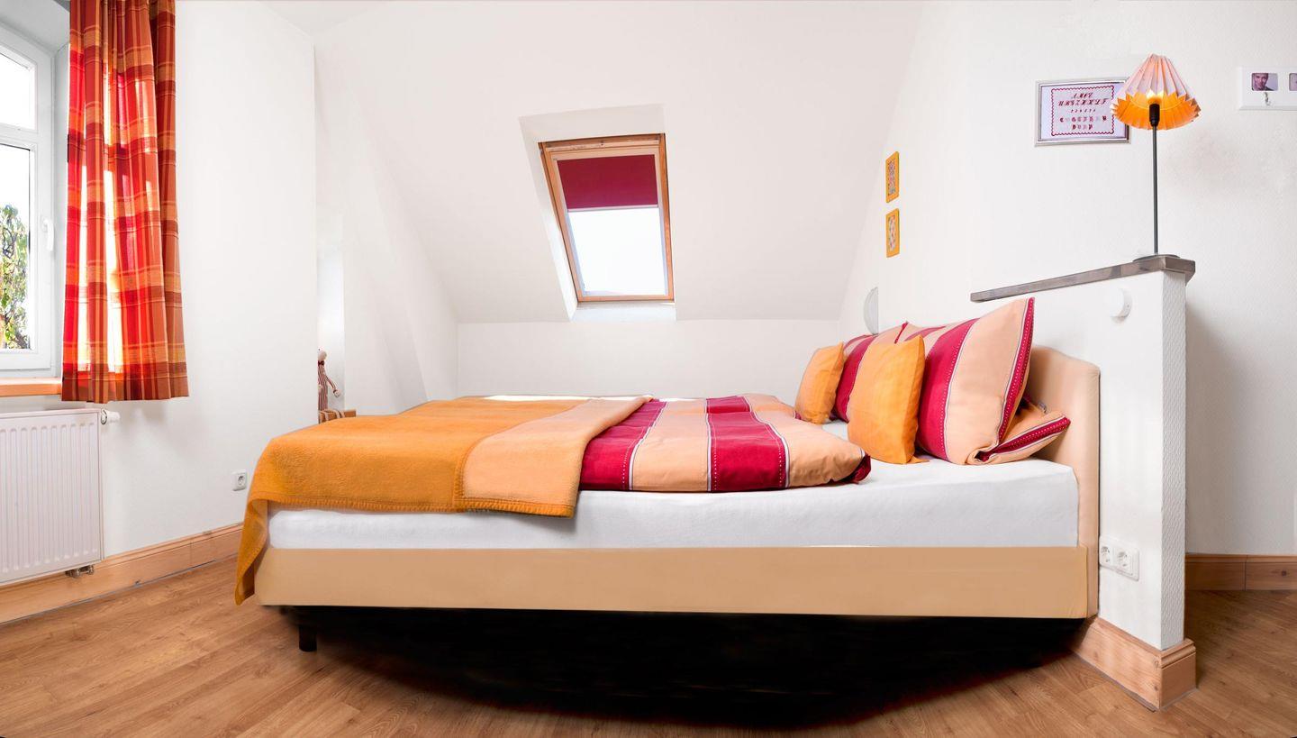Das Schlafzimmerverfügt über ein Doppelbett (Boxspringbett) und ausreichend Schrankplatz. Das zweite Schlafzimmer mit einem Einzelbett hat den Kleiderschrank auf dem Flur.