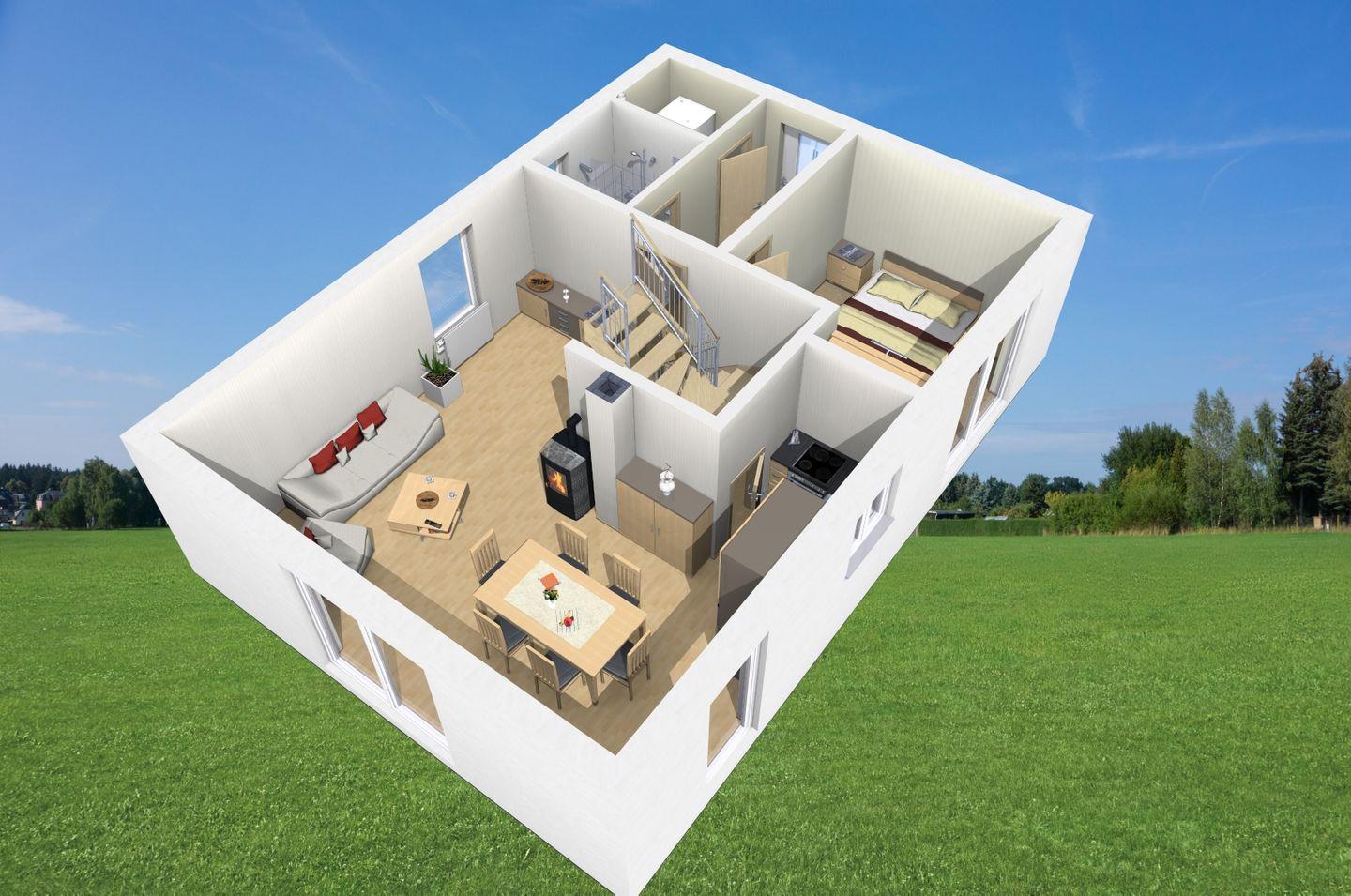 Eine gemütliche Sitzecke mit Kaminofen, ein Schlafzimmer mit Doppelbett für zwei Personen, ein Bad mit Dusche und WC sowie eine schöne Terrasse mit Gartenmöbeln und Grill erwartet Sie im EG.