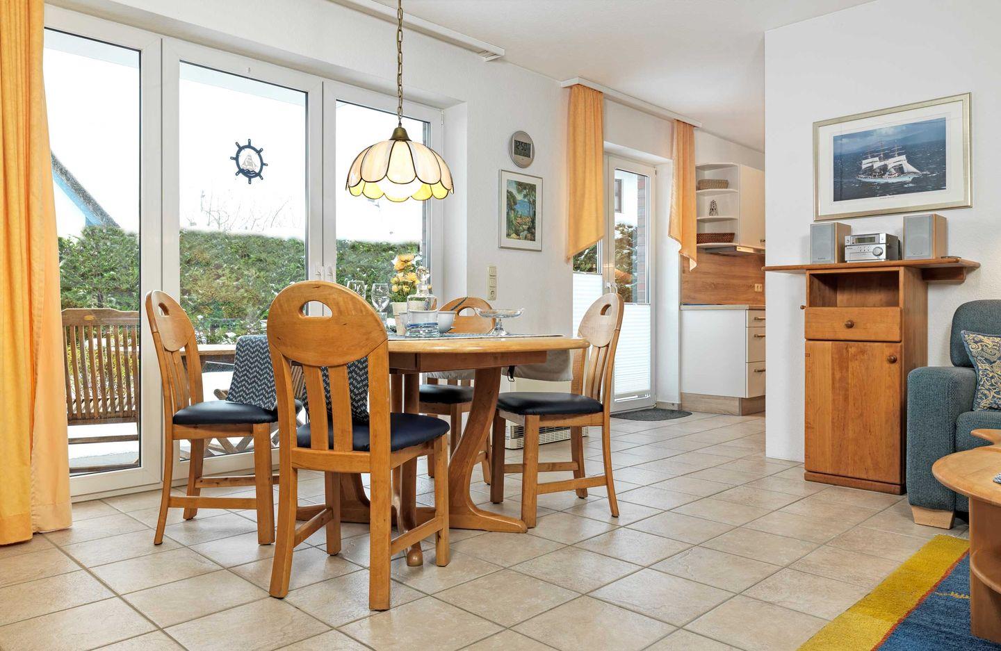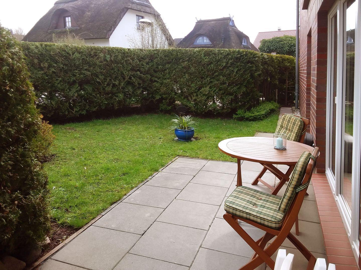 Genießen Sie die Poeler Sonne auf Ihrer Terrasse mit kleinem Garten und Gartenmöbeln.