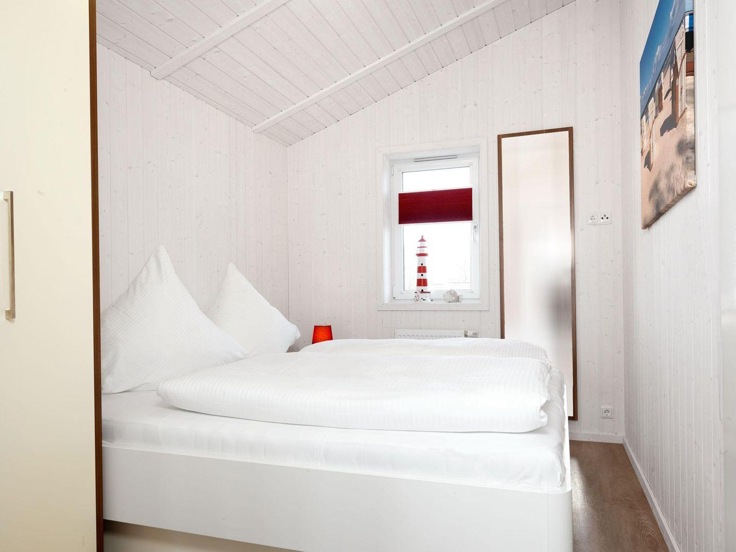 Zwei Schlafzimmer, eines mit Doppelbett und das andere mit zwei Einzelbetten ergänzen die Wohnung. Eine Schlafcouch befindet sich im Wohnzimmer.