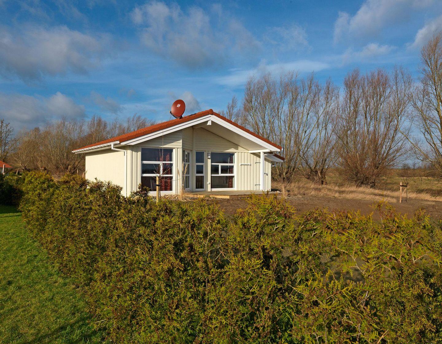 Es liegt in sehr ruhiger Lage direkt am Salzhaff. Durch ein großes unverbautes Grundstück hat man eine weite Sicht auf das Wasser und in die Natur mit einer abwechslungsreichen Vogelwelt.