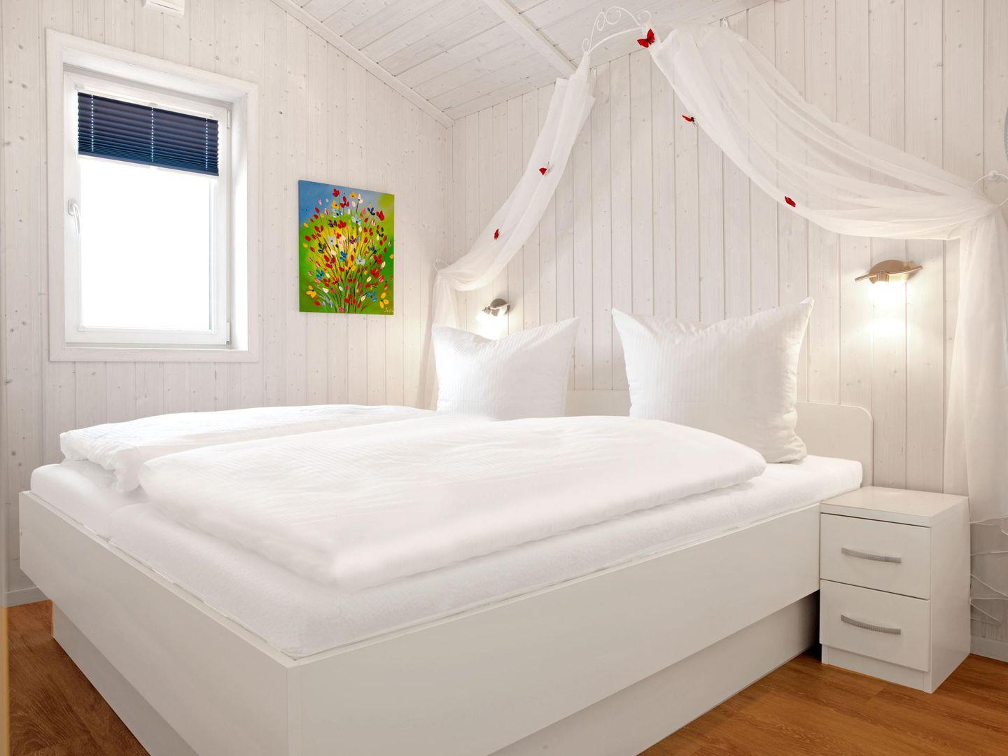 Das helle, gemütliche Wohnzimmer mit hübschen, modernen Möbeln und vollwertigem Schlafsofa lässt keine Wünsche offen. Kostenloser W-Lan-Anschluß vorhanden. Ein Flat-TV mit DVD-Player sowie ein CD-Spieler und ein MP3-Player stehen für weitere Zerstreuung zur Verfügung. Der Kaminofen sorgt für heimelige Wärme. Ein Esstisch für 5 Personen direkt am Panoramafenster mit Blick in die Natur steht Ihnen zur Verfügung. Vom Wohnzimmer aus gelangen Sie auf die Terrasse, die mit Terrassenmöbeln und zwei Liegen ausgestattet ist. 2 schöne Schlafzimmer, eins mit Doppelbett, eins mit Etagenbett (untere Liegefläche 140x200) erwarten Sie. Die offene Küche im Eingangsbereich bietet Ihnen allen Komfort, den Sie für einen gelungenen Urlaub brauchen. Ein Gäste WC mit Dusche sowie das große Bad mit Sauna und Whirlpool, sowie einer weiteren Duschkabine und einem WC runden die perfekte Ausstattung ab. Die Fenster im Wohnzimmer und Schlafzimmer sind mit Insektenschutz ausgestattet.